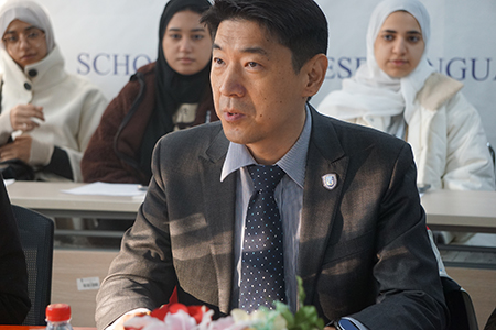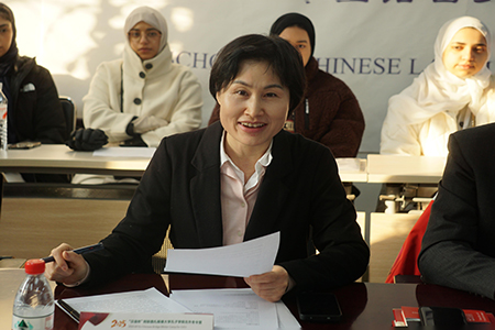 珍贝(Zainab Ali Dawood Salman Abdulla)作为带队教师代表发言。她表示,这是她第三次到访北京、第二次带队参与北外“汉语桥”冬令营,再次踏入北外校园令她倍感亲切。她分享了上一届冬令营学生从初来乍到的好奇忐忑,到满载自信、知识与友谊而归的成长历程,并由衷感谢项目各方的精心组织、热情支持以及辛勤付出。她鼓励学生以开放、尊重、互助的态度投入学习,在接下来十天的旅程中不断拓展知识、开阔视野、留下美好记忆。