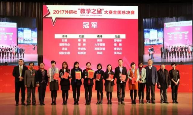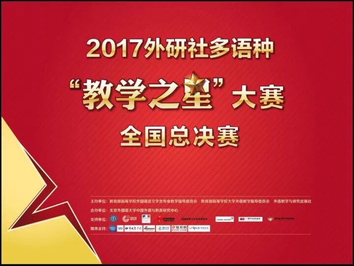 2017外研社多语种“教学之星”大赛,由教育部高等学校外国语言文学类专业教学指导委员会、教育部高等学校大学外语教学指导委员会和外语教学与研究出版社共同举办,大赛涵盖日语、俄语、德语、法语、西班牙语、阿拉伯语和韩语七个语种,共分8个组别,旨在为高校多语种教师搭建分享交流、相互启迪、共同提升的平台。此次大赛分为初赛、复赛和全国总决赛三个阶段,初赛为校园选拔赛,由院系推荐最终进入复赛的人选;复赛以教师提供本语种授课视频、教案及教学PPT的形式进行选拔;全国总决赛首次尝试现场比赛的方式,包含教师现场说课、讲课、专家提问三个环节。大赛自今年5月启动,共有来自全国100余所高校参赛,经过专家的集中评审,最终有7个语种8个组别的91位教师成功晋级全国总决赛。