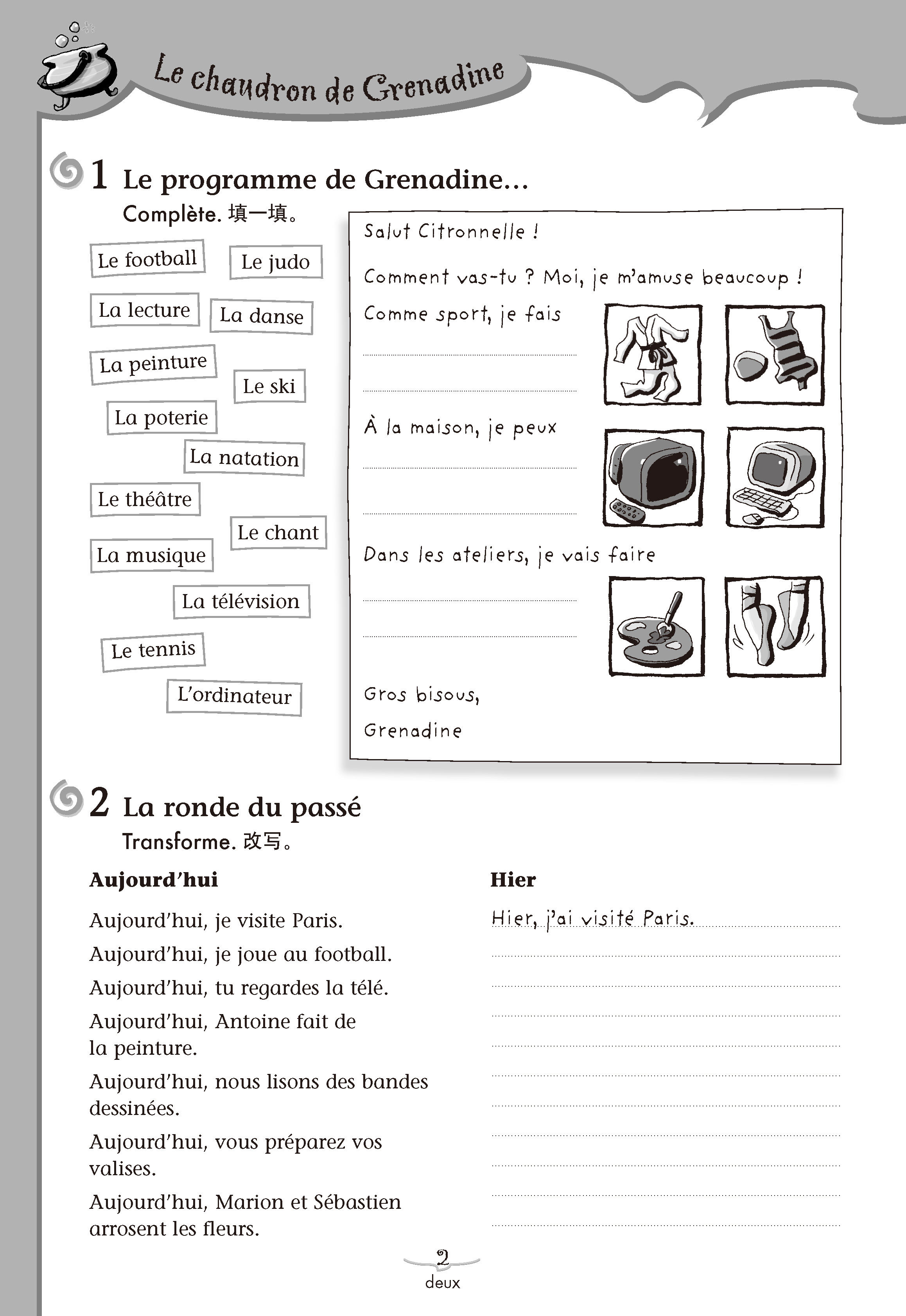第三板块从以Grenadine为主人公的漫画故事入手,配合录音,故事中穿插本课相关知识的同时扩充了新的内容,课后相关的小问题可以帮助漫画的理解。
