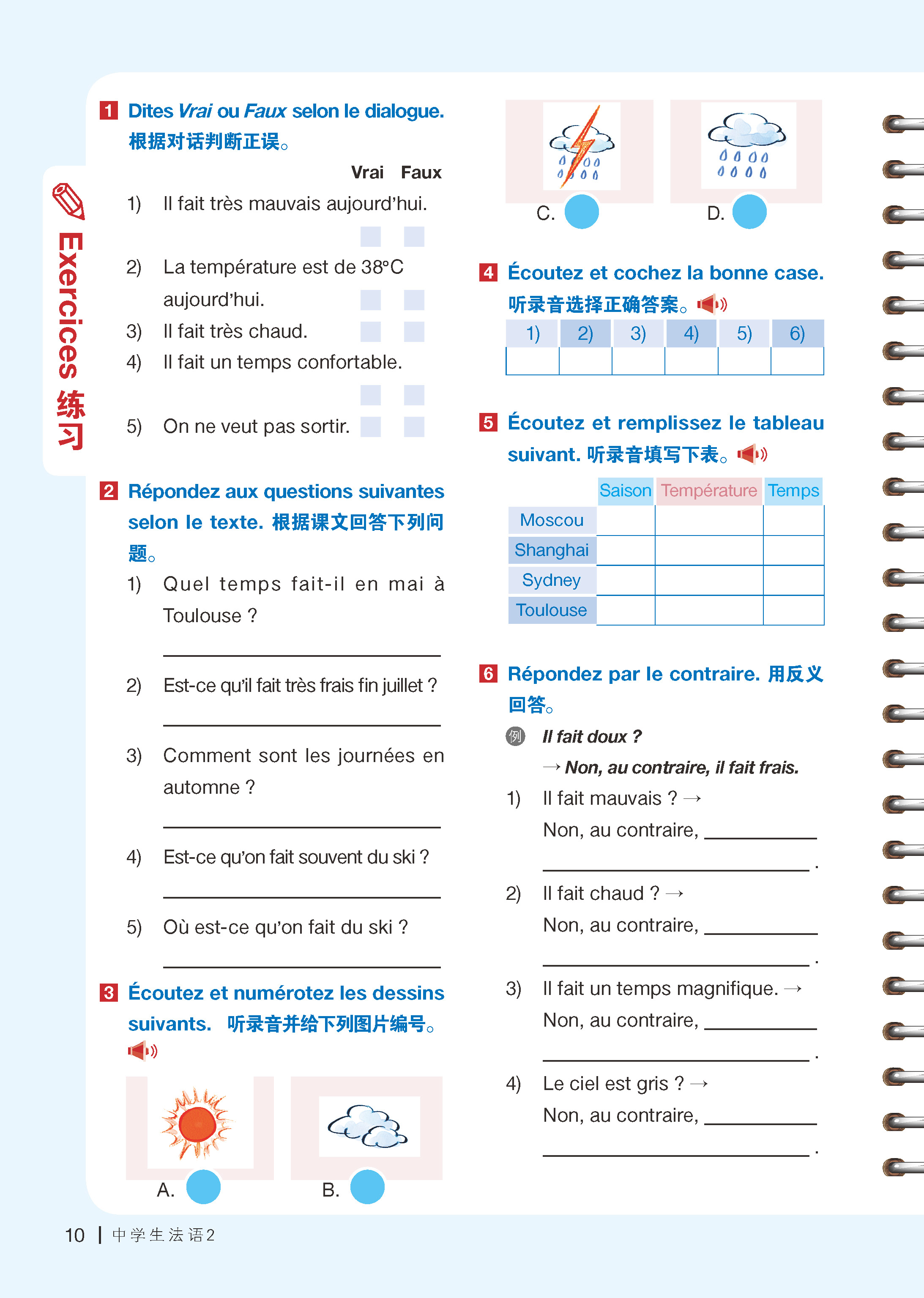 《中学生法语》系列教材是由常年工作在教学一线且具有丰富实践经验的初、高中教师,根据中学生的年龄、心理特点、接受知识的能力以及法语作为二外学习的特性,对大量中法外语教材进行分析对比研究编写而成的。《中学生法语》系列教材分为两册,**册突出法语语音知识的掌握,第二册强调法语基础知识的培养,两侧书都注重对法国文化常识的了解。