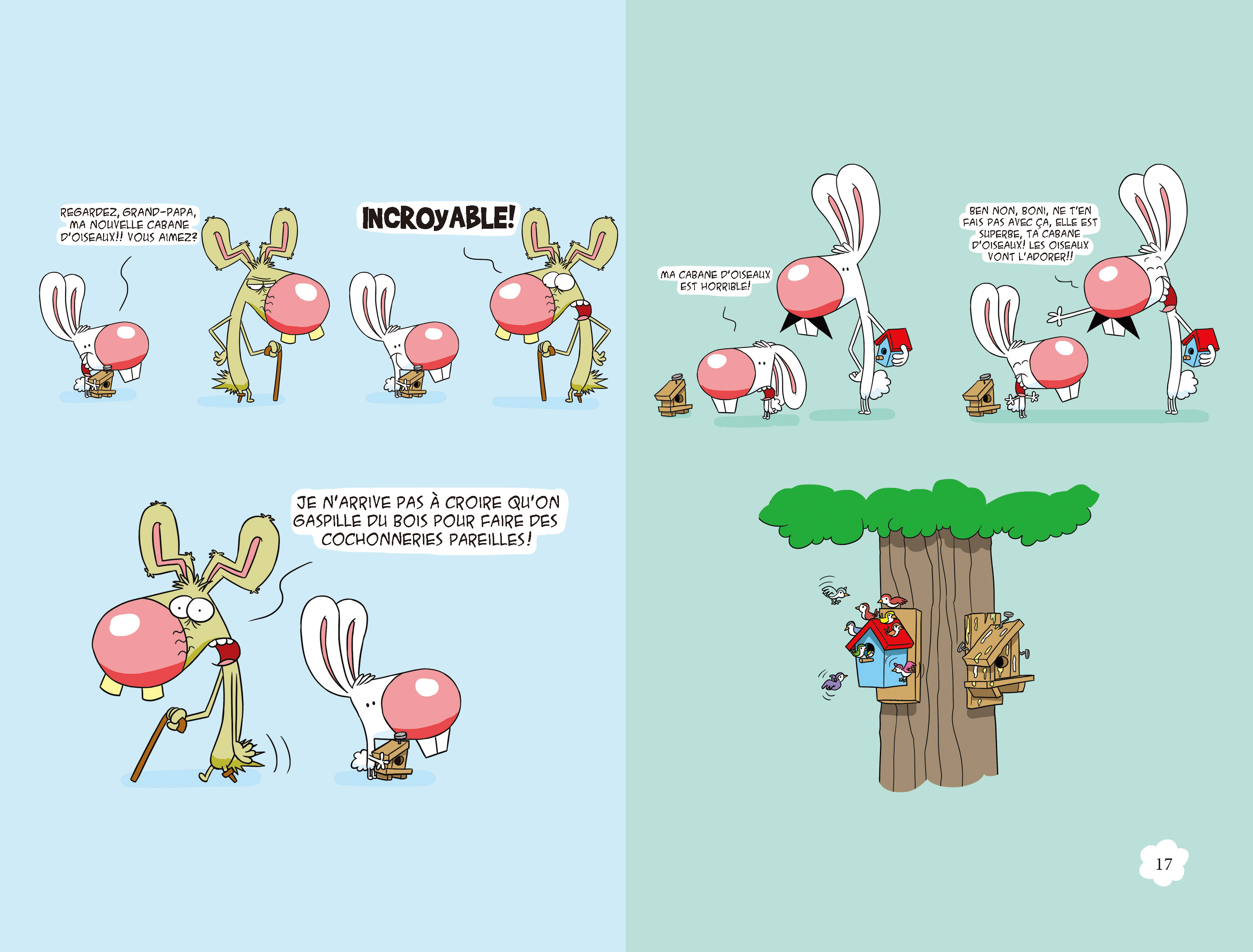 《兔子波尼》是"法语‘漫’游"系列中的一册,该系列包含的《兔子波尼》、《无基百科》和《葡萄酒传世之旅》三部漫画,涵盖家庭、幽默、科普等不同主题元素,语言难度从基础级别到中高级不等,不同法语学习阶段的读者(高校法语专业学生、法语选修课学生、青少年及成人学习者)均能从中获益。主要面向大众学习者,专业学习者亦可将其作为辅助提升的材料。《兔子波尼》由中文导读、30个法语原文小故事和中文简注、备忘录(Memo)三部分组成。《兔子波尼》是一本适合A1级以上级别法语学习者的漫画读物。导读部分欢快明了,配有主人公图谱和性格特征,可以帮助读者迅速了解全书基调、内容和框架;法语原文小故事诙谐幽默,语言简单,配合个别中文注释,更加通俗易懂;备忘录的设置可以使读者在阅读同时获得语言学习体验,学常用说法、练法语表达、猜俗话儿语。