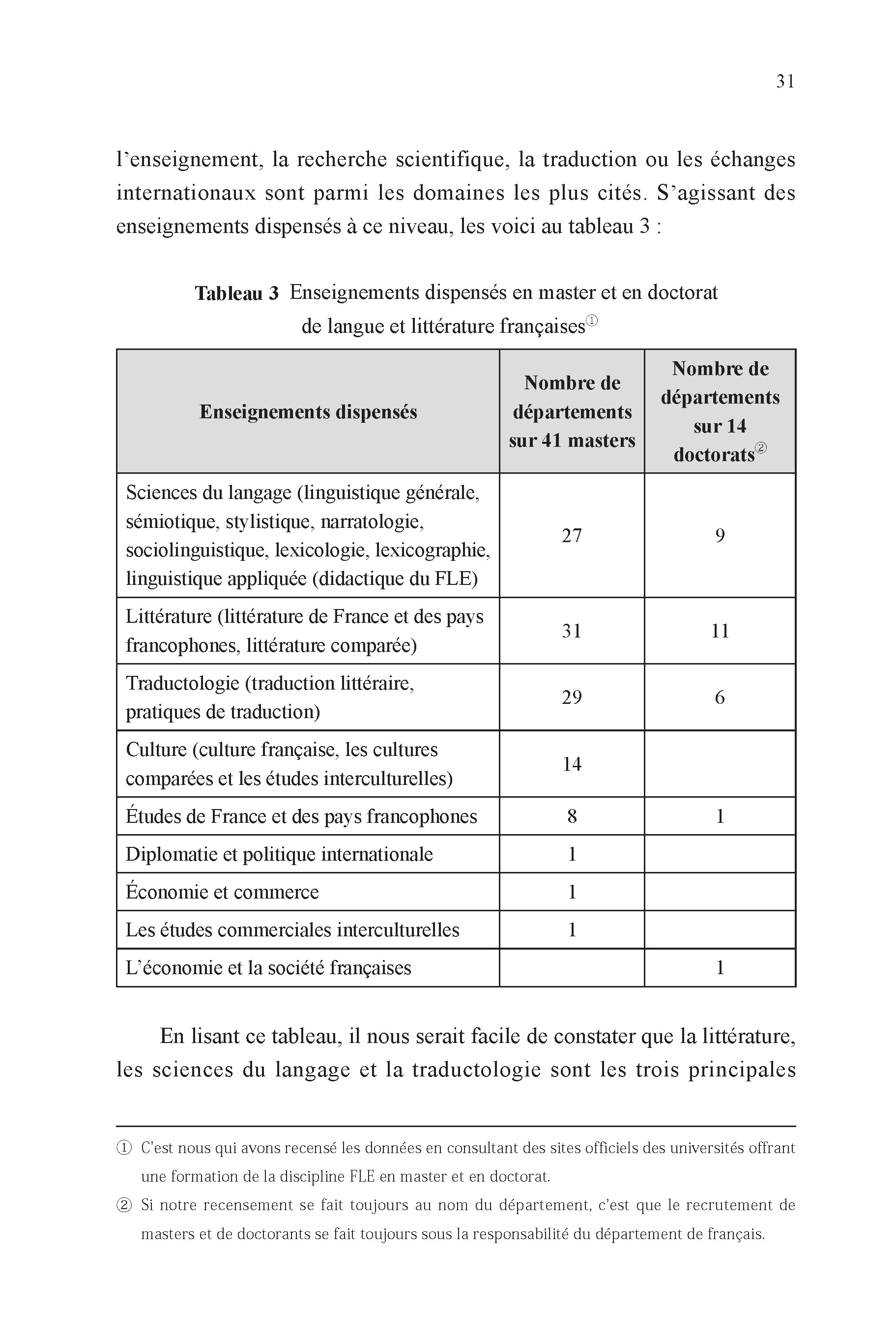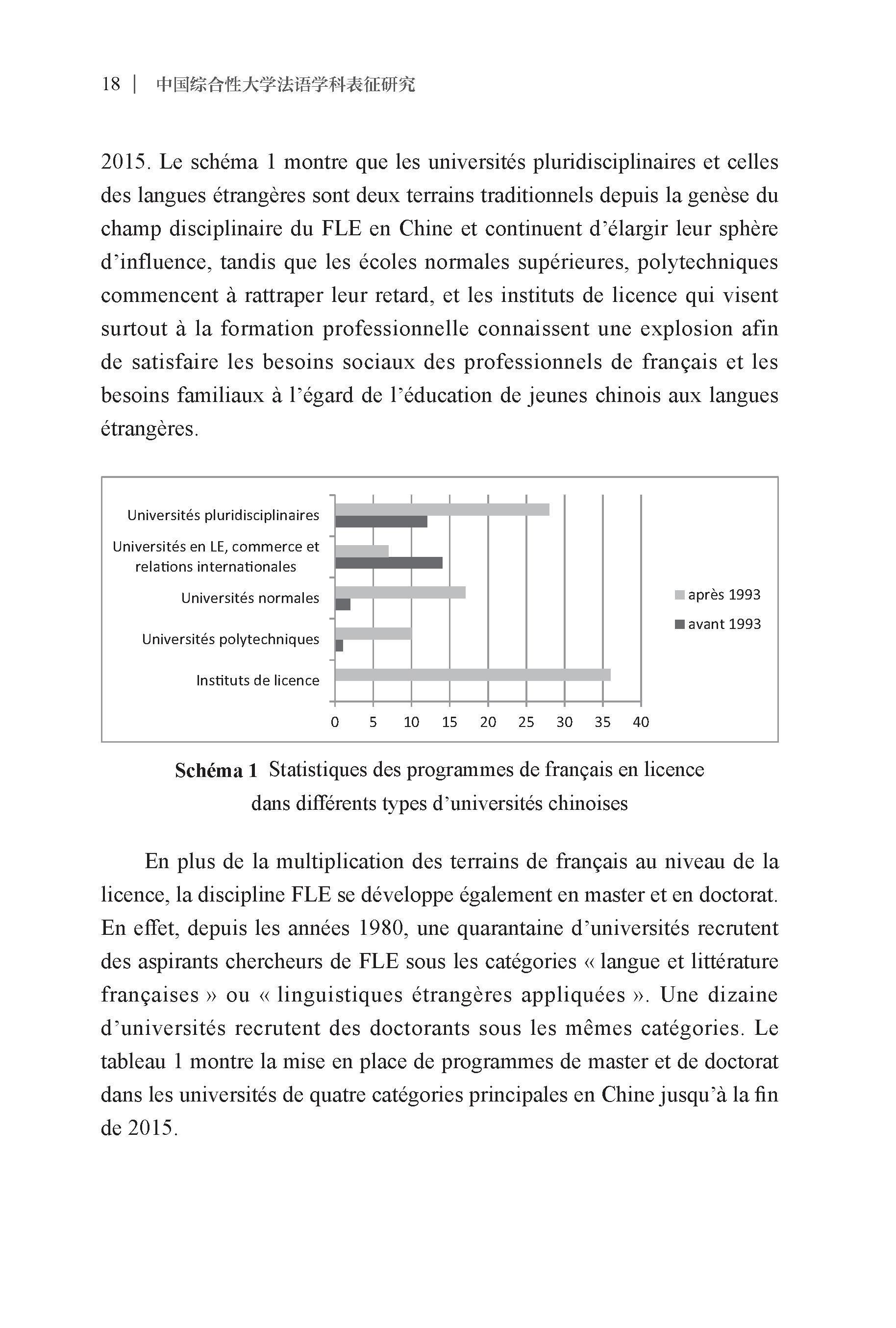 然而,与开设法语专业的高等学校数量迅速增加形成鲜明对比的是,某些没有外国语言文学学科建设传统和经验的综合性大学缺乏法语学科建设、进步和发展的土壤,从专业学生的学习动机、法语教师的教学和科研积极性,到校级领导的支持力度,都没有显示出可持续发展的动力。《中国综合性大学法语学科标正研究》尝试对综合性大学的法语学科建设提出具有针对性的优化发展原则。