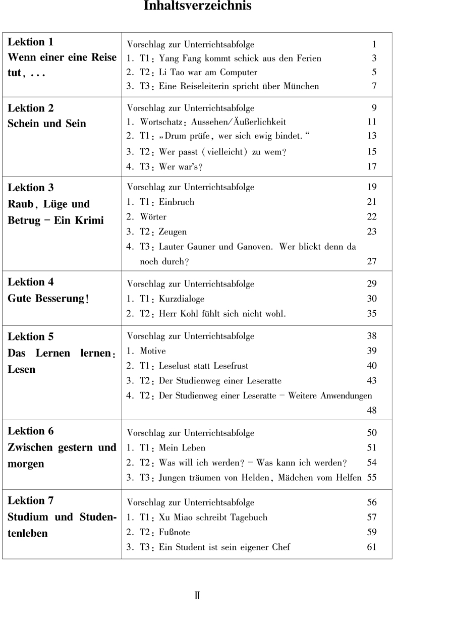 《当代大学德语2教师手册》为高等学校德语专业教材《当代大学德语2学生用书》的配套教师手册。本书主要针对的对象是刚刚参加工作的德语教师,在内容的编写上基本沿袭了《当代大学德语1教师手册)》的主导思想,为基础教程每一课的教学程序及具体的教学方法提出建议。始终贯彻联系实际、以学生为中心的启发式教学原则,使学生养成主动参与语言实践的习惯。