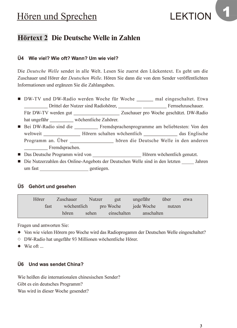 《当代大学德语(3)(听说训练)》是高等学校德语专业本科基础阶段的听力教材,是《当代大学德语(3)(学生用书)》的辅助用书,它在词汇和语法上完全与学生用书挂钩,是对学生用书题材和内容的扩充。本书取材贴近生活,语言规范现代。《当代大学德语(3)(听说训练)》共由10课课文和一个听力测试组成,包括听力练习、听力原文和练习答案三大部分。其中每一课的主题都指向学生用书中的内容,对已经学过的知识进行系统的训练。