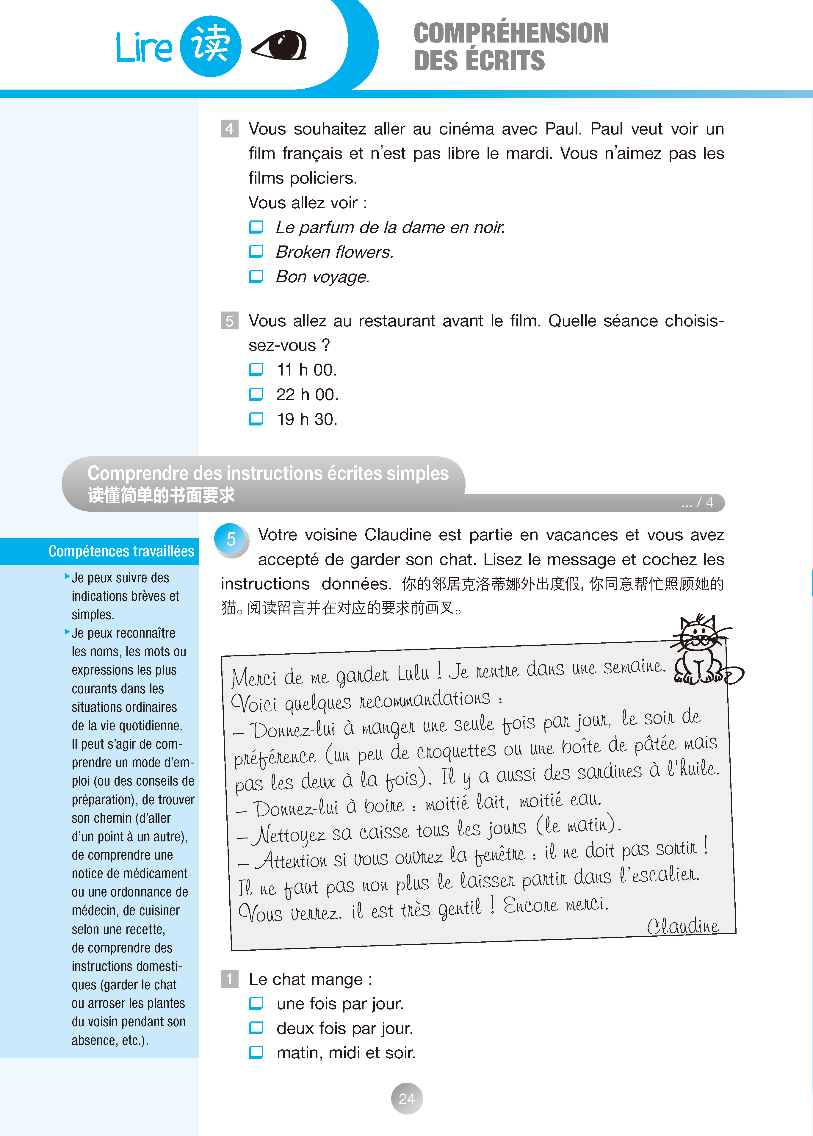 《法语DELF高分突破A1》在原版引进的基础上请北外名师对习题参考答案进行考点提示和重点解析,教会备考读者快速准确解题的方法。读者可以根据要点提示找到马晓宏《法语(修订本)1》以及《走遍法国1(上/下)学生用书》相应的语法点讲解,查漏补缺。