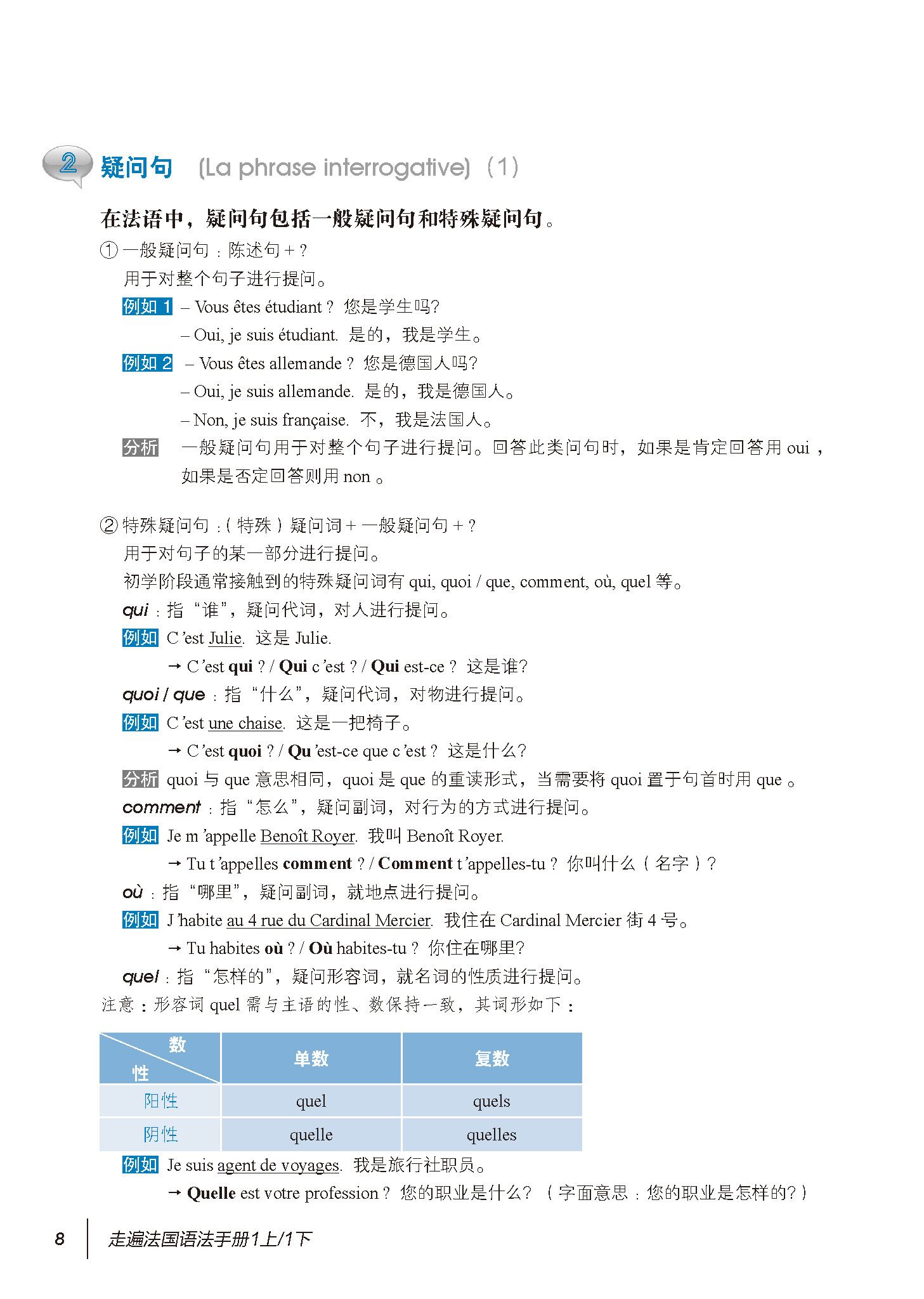 《走遍法国语法手册(1上/1下)》与《走遍法国》(1上/1下)相对应,是对其语法的选择、归纳、补充和拓展。《走遍法国语法手册(1上/1下)》既可以作为《走遍法国》(1上/1下)的配套用书,也可以作为独立语法书供读者使用。