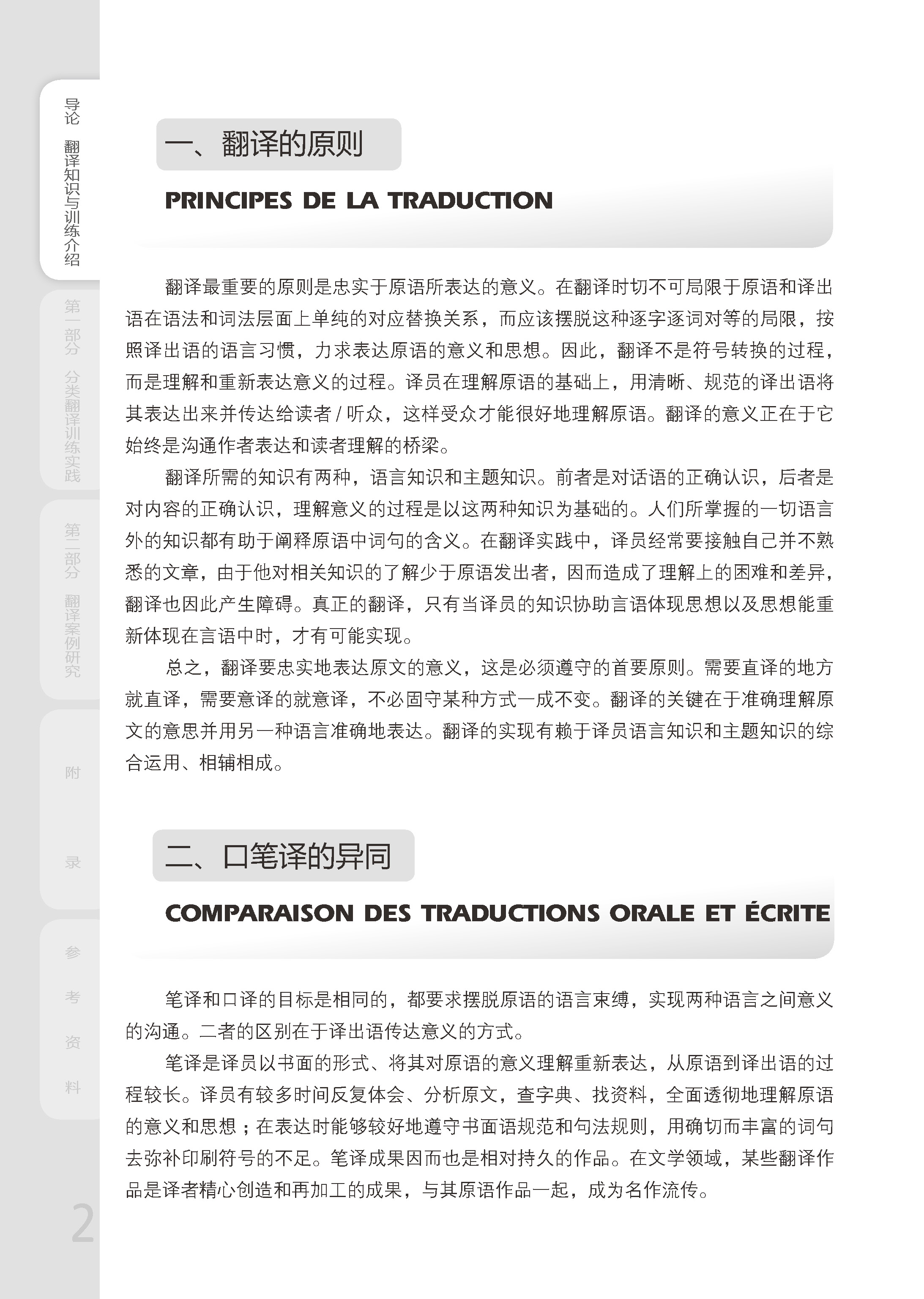 《法汉汉法翻译训练与解析》融合翻译资格考试的内容和形式,着眼翻译训练的标准和要求,选取法汉双语例文,覆盖政治、经济、外交、文化、体育、社会生活、国际关系等领域的38个主题,结合例句,对比不同的译文进行点评,总结翻译技巧。