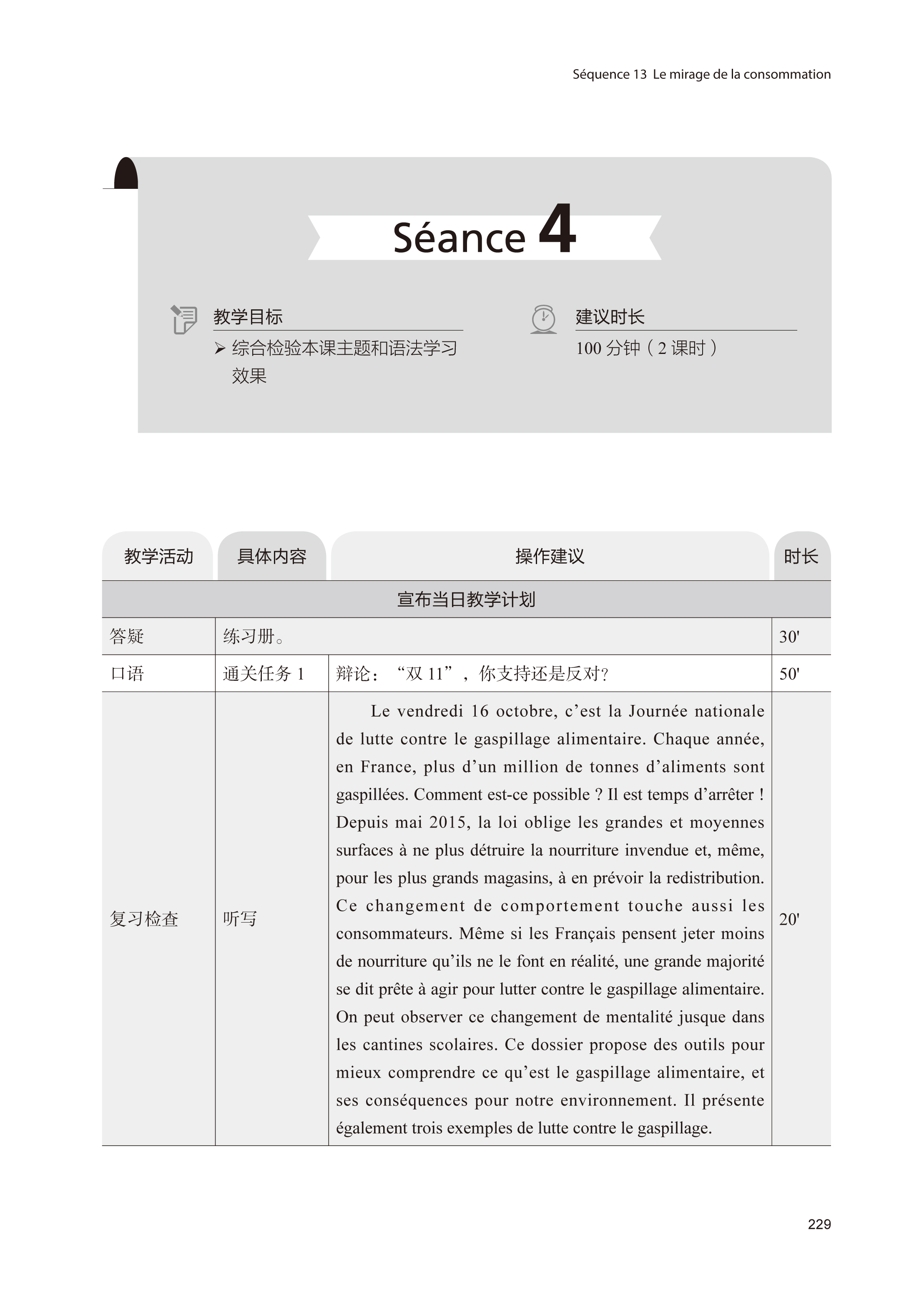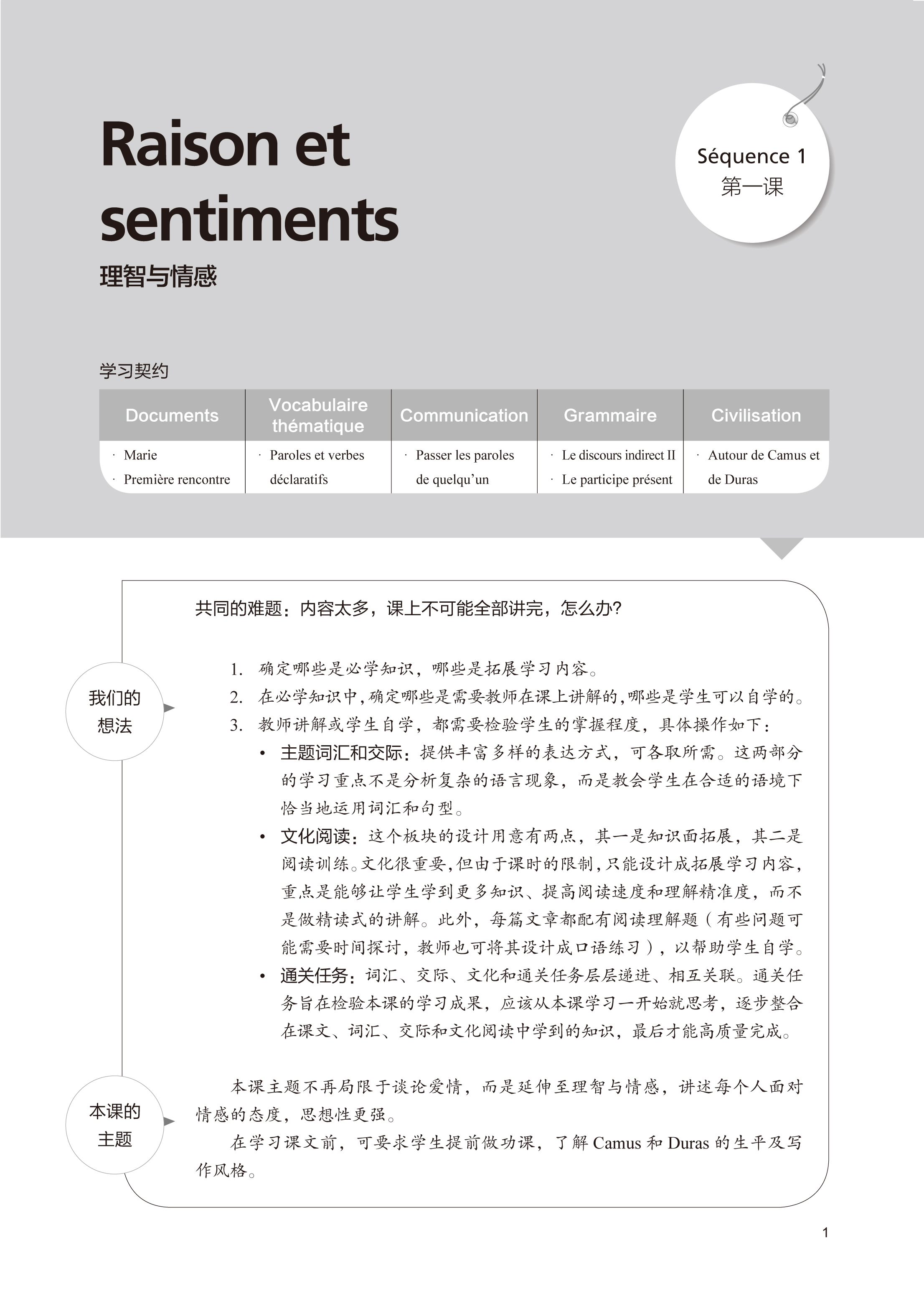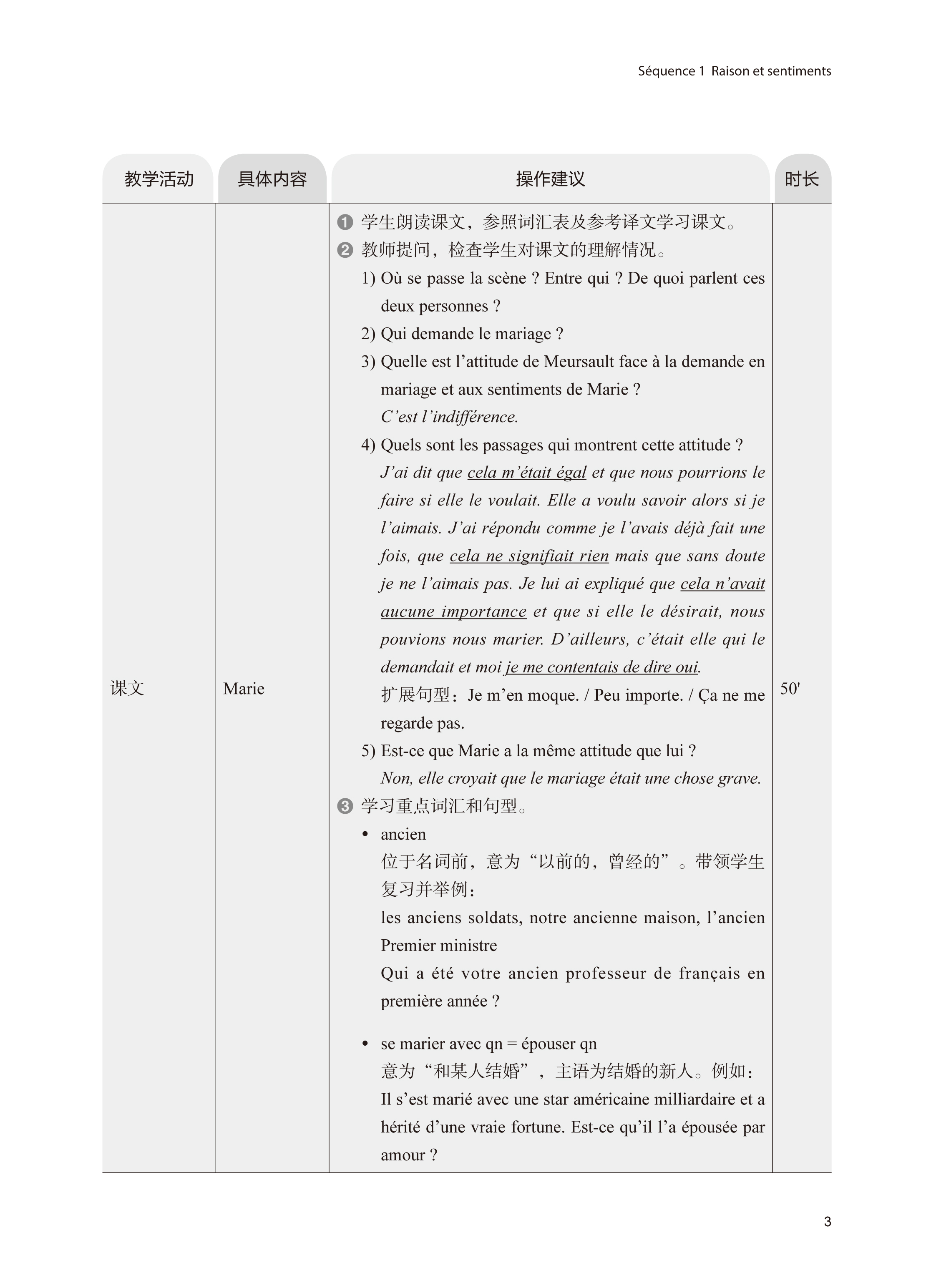 《新经典法语3教师用书》是配套《新经典法语3学生用书》编写的教师辅导手册。全书与学生用书同步,分为4个单元,共14课,每课由课堂组织建议、课后练习答案和课文参考译文三部分组成。编者秉承以学习者为中心,鼓励自学和归纳学习的理念,对如何使用《新经典法语3学生用书》开展课堂进行了详细地解答。帮助教师了解在课堂的哪个环节,使用哪部分素材对哪个语言知识点如何展开讲解,帮助教师规划这个学期、这个月、这一周甚至这一节课的时间和内容。可以说,这是一本十分详尽的教师辅导手册。