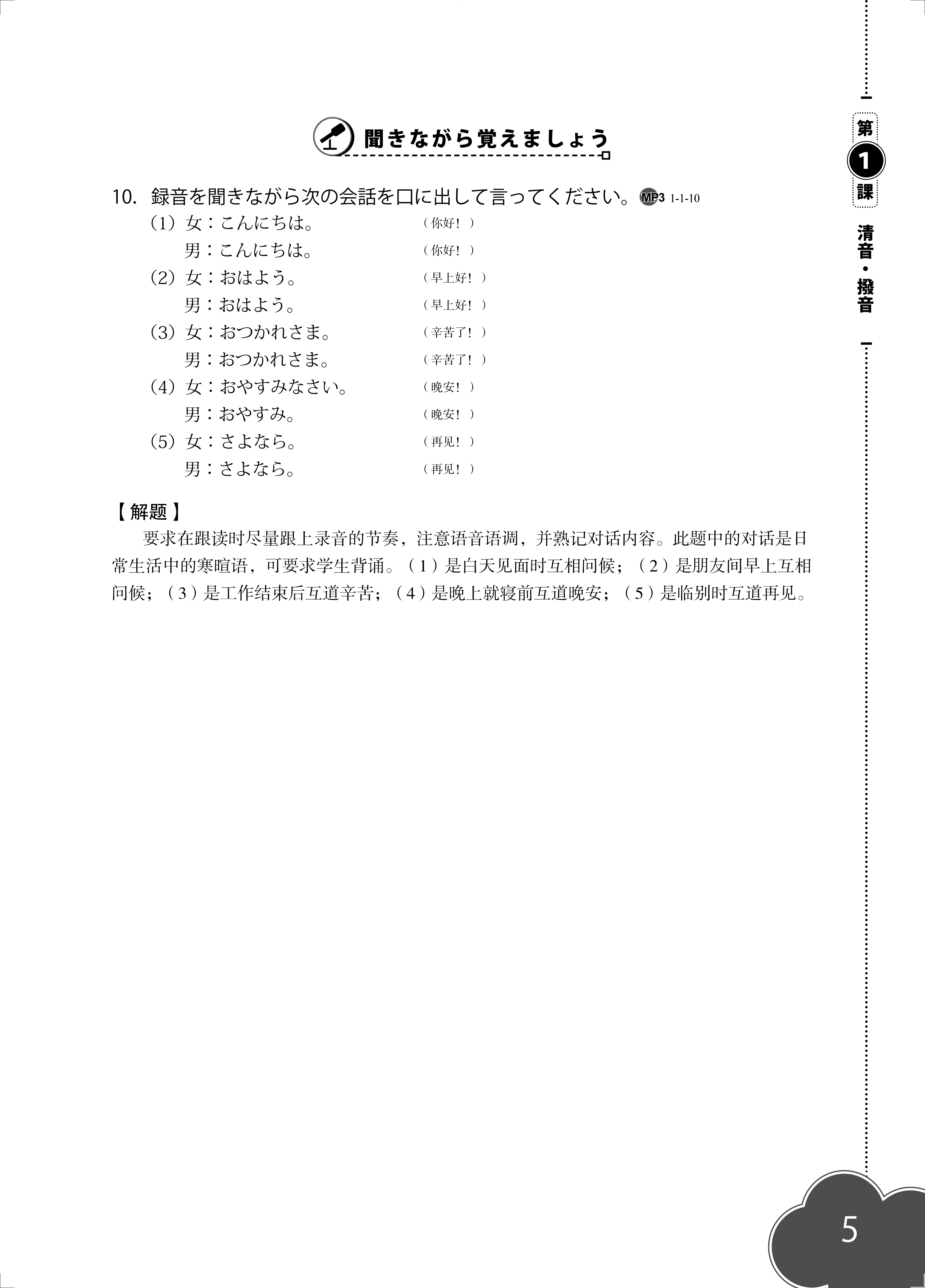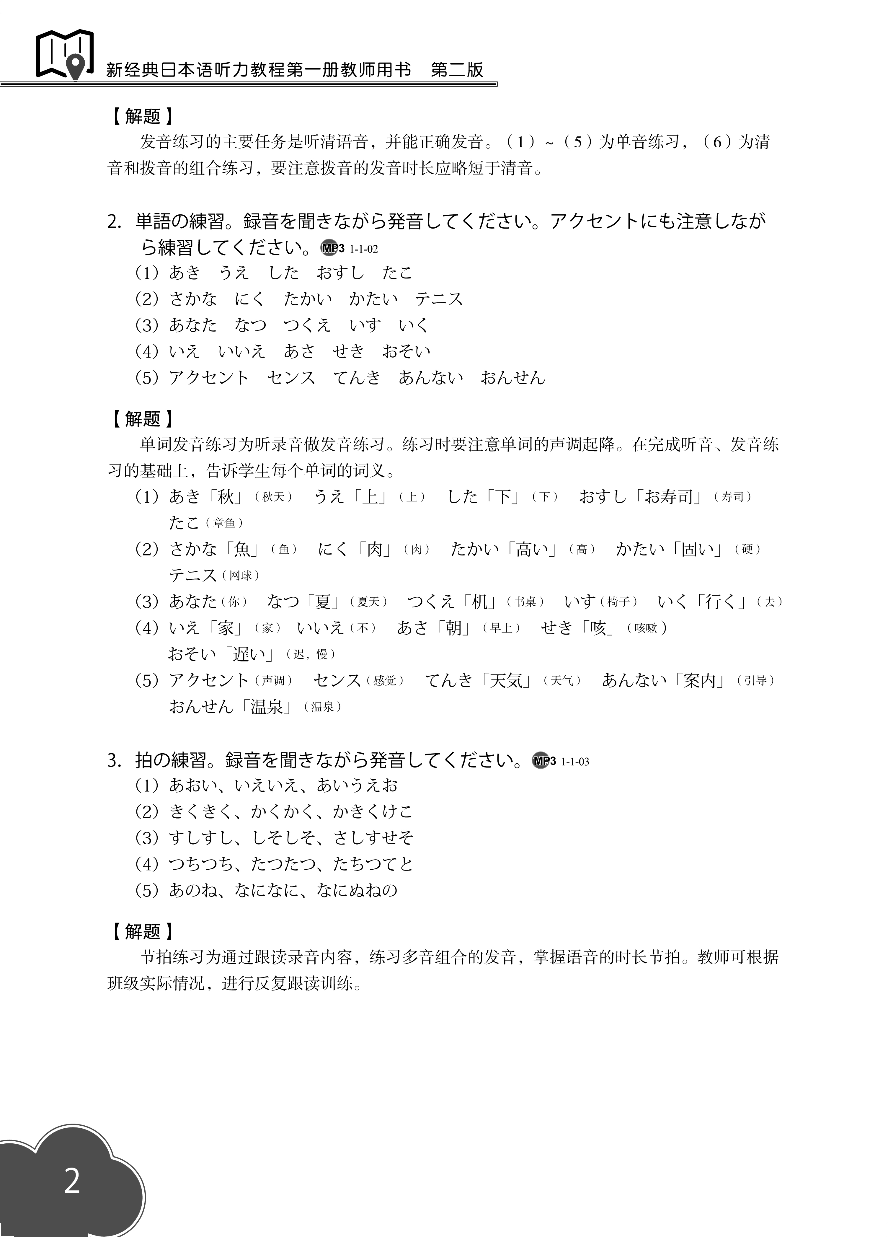 《新经典日本语听力教程第一册教师用书(第二版)》本套教材分别设计了"听辨""听选""听写""跟读""试说""听译"等环节,强化语言输入与输出的衔接,以"写、说、译"来促进学生听解能力的培养,*终实现提高语言综合运用能力的教学目标。