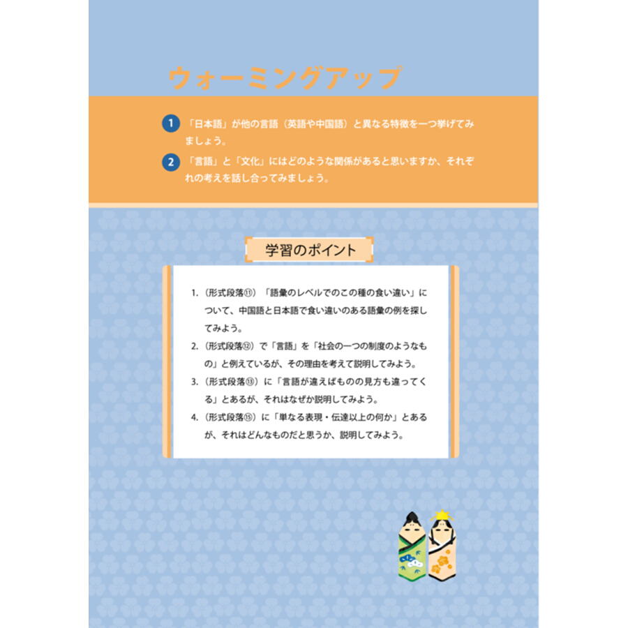 《新经典日本语高级教程第二册(第二版)》是以中国高等院校零起点的日语专业本科三年级学生为对象,以培养学生听说读写译综合语言交际能力为目标的教材。《新经典日本语高级教程第二册(第二版)》教材以《高等院校日语专业高年级阶段教学大纲》为依据编写而成。《新经典日本语高级教程(第二版)》教材共分为2册,每册10课,每课由Warmup、学习要点、正文导入、正文、作者简介、单词解说、文法解说、学习指南、课外阅读等模块构成。各院校可以按照6至8课时一课的进度安排教学,教师也可以根据学生的接受程度灵活掌握。