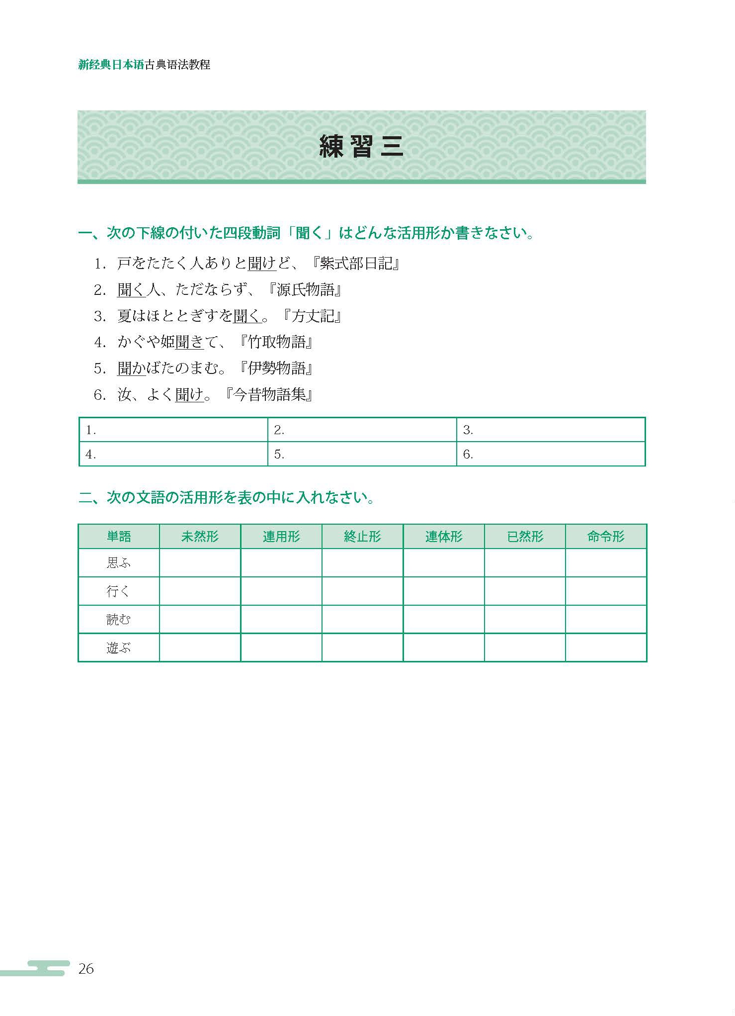《新经典日本语古典语法》涉及了词法、句法及社会语言学范畴的敬语等内容,涵盖了日语古典语法的左右基本问题。《新经典日本语古典语法》例句精炼简洁,解说简明易懂,便于学习者理解掌握。《新经典日本语古典语法》把基础知识的学习放到首位,注重以练习的方式巩固所学知识,并以名作鉴赏的方式引导学习者学以致用。
