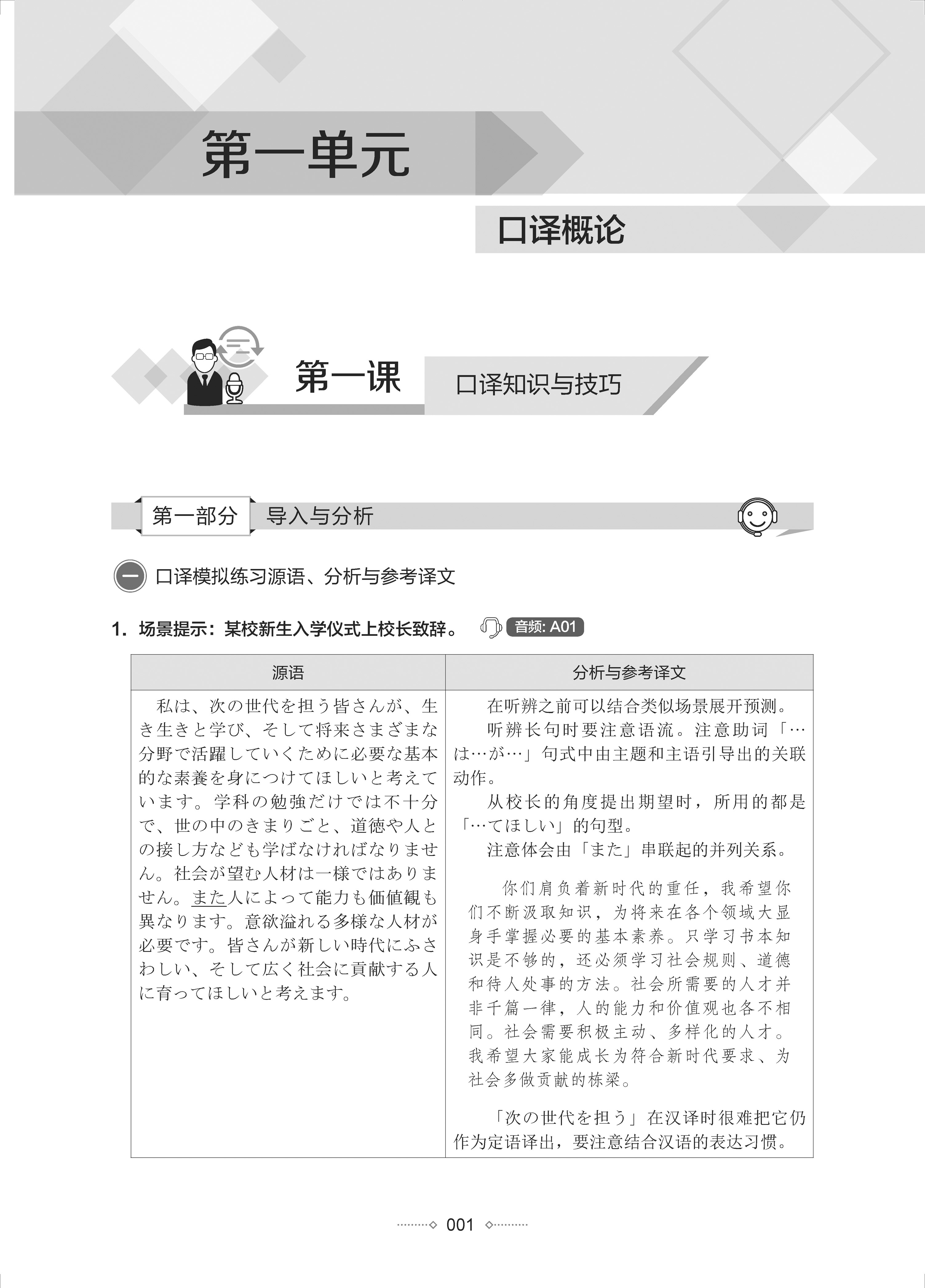 《新经典日本语口译基础教程》系列图书供日语专业高年级或具有同等日语能力的学习者使用,在编写中主要体现了以下几个特点:
