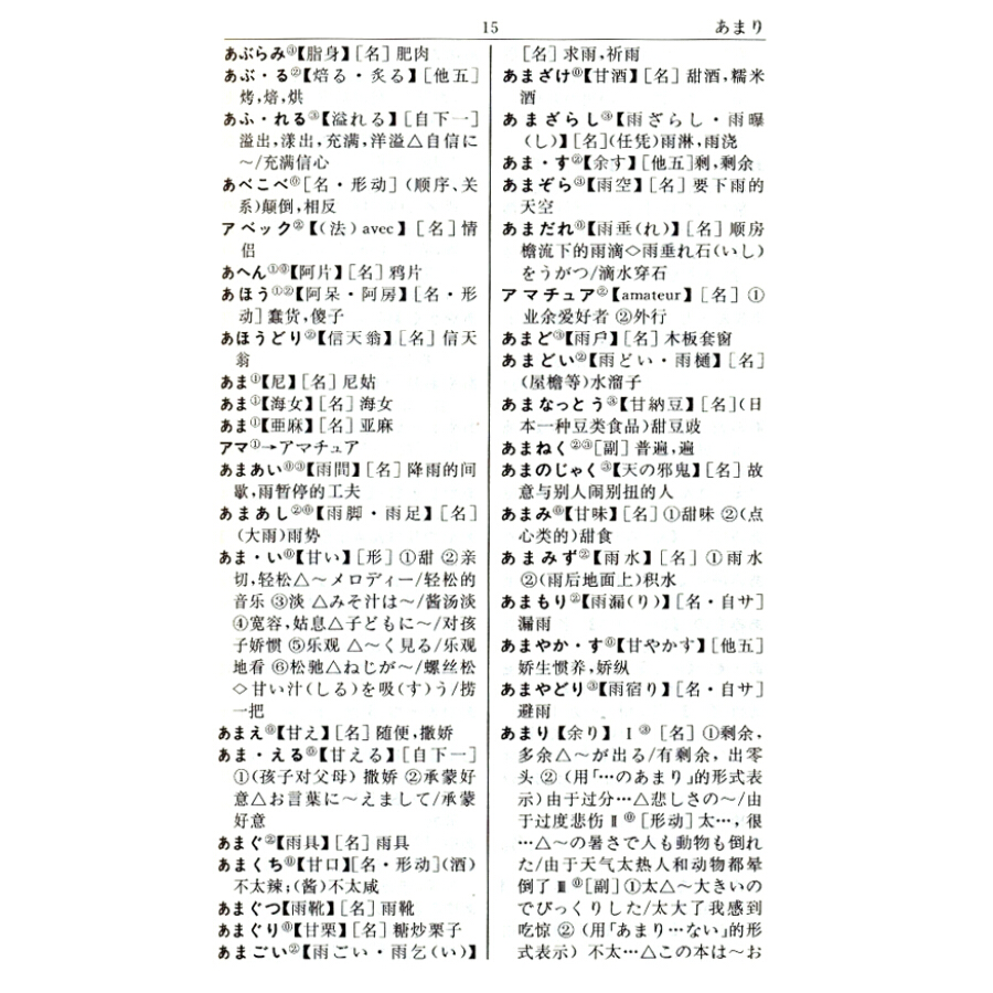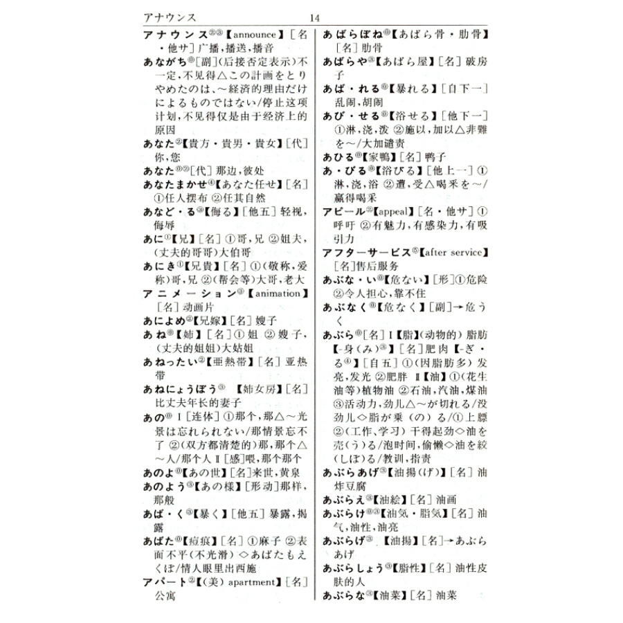 共收词目四万余条,附派生词。特别收入科技、社科新词和外来语。丰富的常用句型和成语、谚语。单词后附有重音读法;动词、助动词、形容词、形容动词活用表;世界部分国家、地区、首都对照表;假名罗马字拼音表;主要度量衡名称对照表;日语汉字音读、训读读法;中日历史年代对照表;中国各省、自治区、直辖市名称表,选词新、释义准、例证多、编排精,方便、实用。