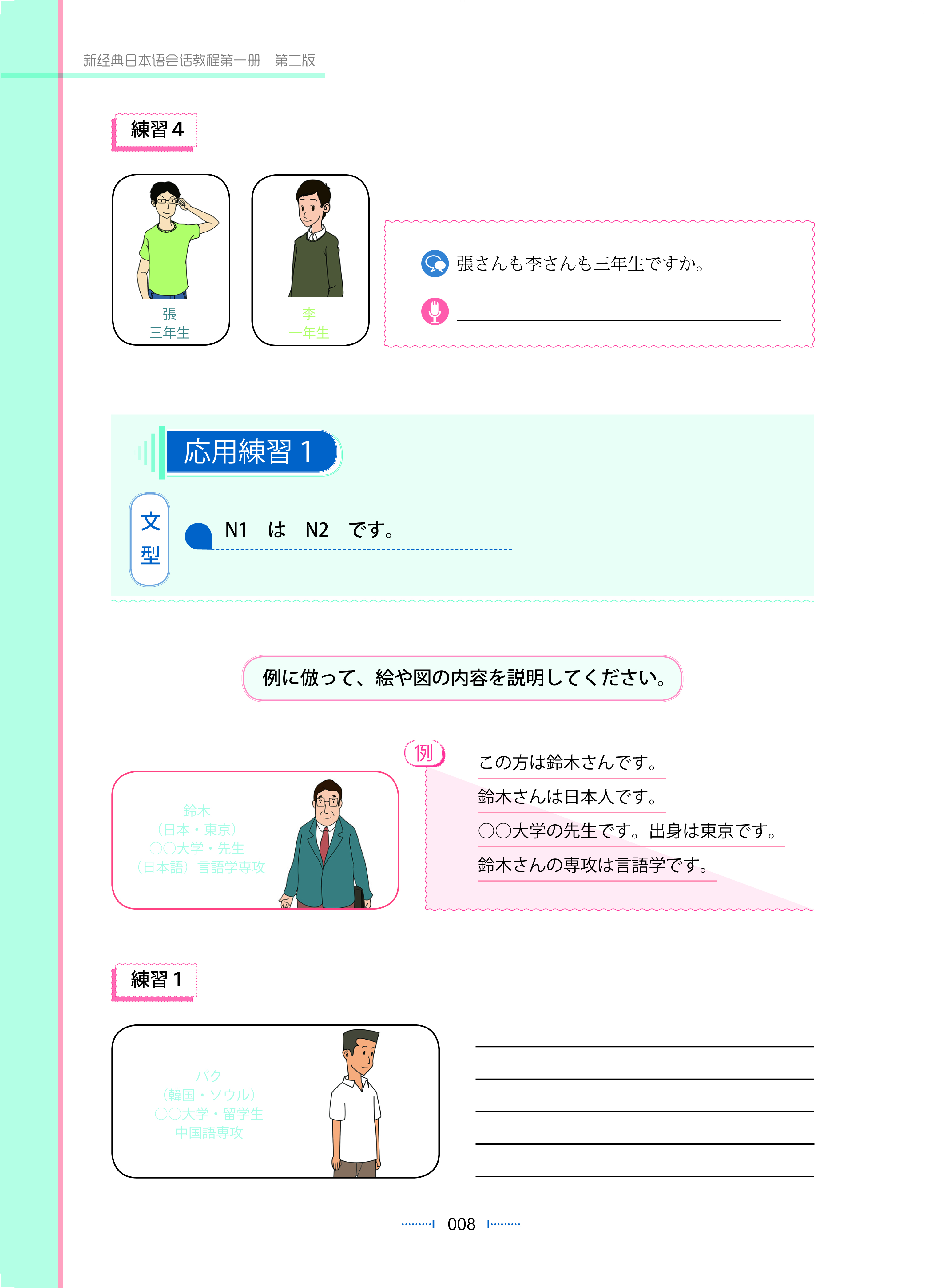 《新经典日本语会话教程(第二版)》遵循先掌握基础知识,然后进行基本训练,再到实践训练,最后提高综合运用能力的日语口语教学规律,分为基础训练篇(第一、二册)、功能提高篇(第三、四册),以分别满足从基础到中级不同程度的日语学习者的需要,并体现出教学过程循序渐进的特点。