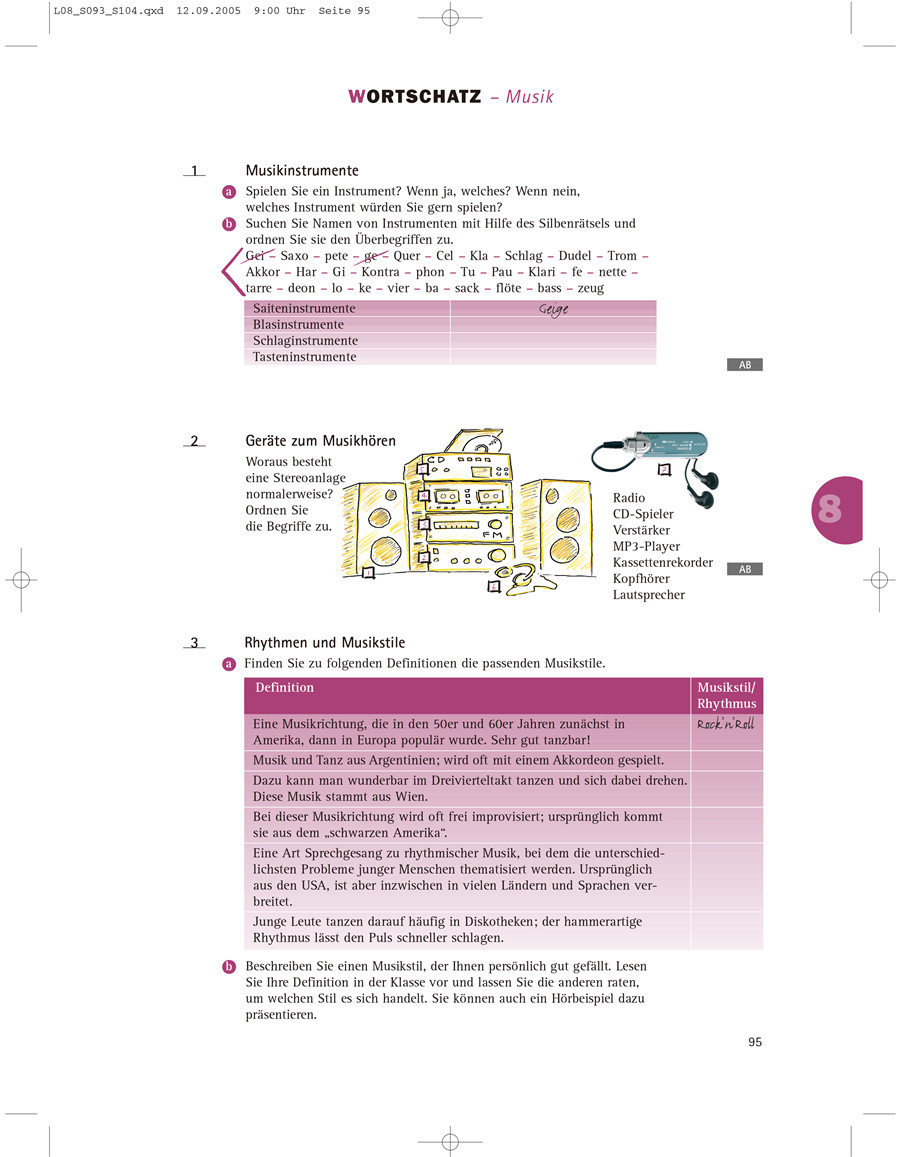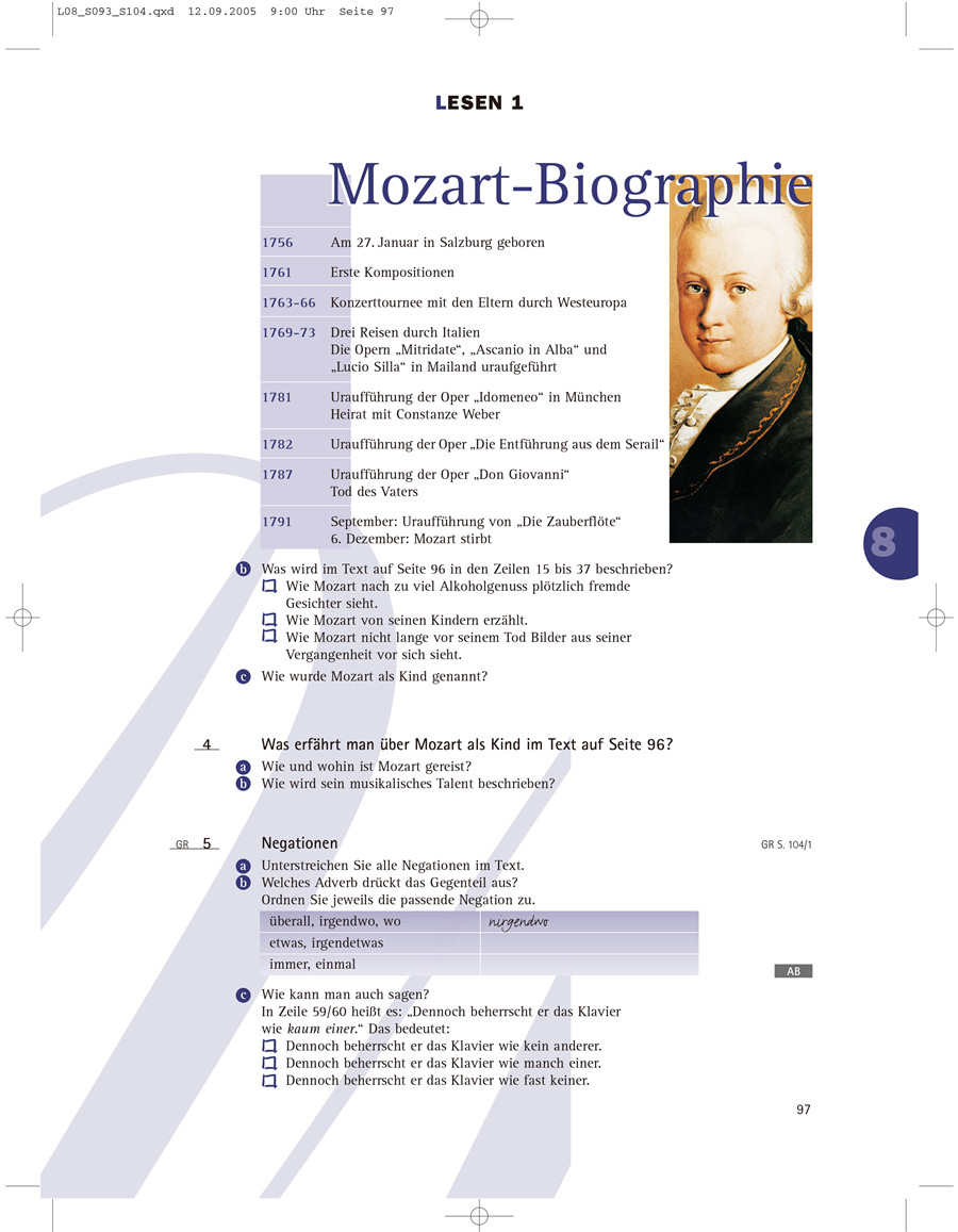 《新标准德语强化教程(中级)》系列教程的内容及语言水平参考德国歌德学院的中级德语考试——ZMP(ZentraleMittelstufenprüfung),学完本套教材将达到欧洲语言共同参考标准C1水平。教材内容由各个独立的板块组成,学习者既可以按照课本顺序学习,也可以选出自己感兴趣的重点单独练习。《新标准德语强化教程(中级)1学生用书》共10课,每课均有独立主题,分别由以下独立板块构成:听、说、读、写、词汇、语法。《新标准德语强化教程(中级)1学生用书》语言难度为欧洲语言共同参考标准B1。