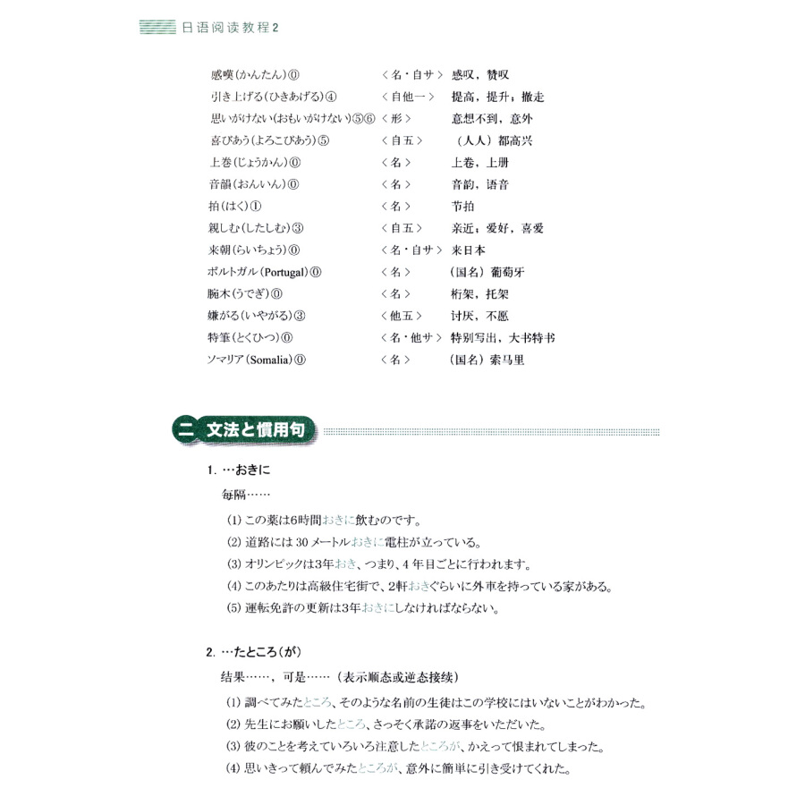《日语阅读教程2》供日语专业学生三年级全年使用,也可供有一定日语基础的读者课外使用。课文选材丰富、具有时代气息。既可扩大阅读量、词汇量,复习相关语法知识,又可进而认识日本社会,了解日本文化。每课课后练习充实,包括课文内容理解的确认,词汇等语言知识的操练,也有大量中日日中笔译的练习 。