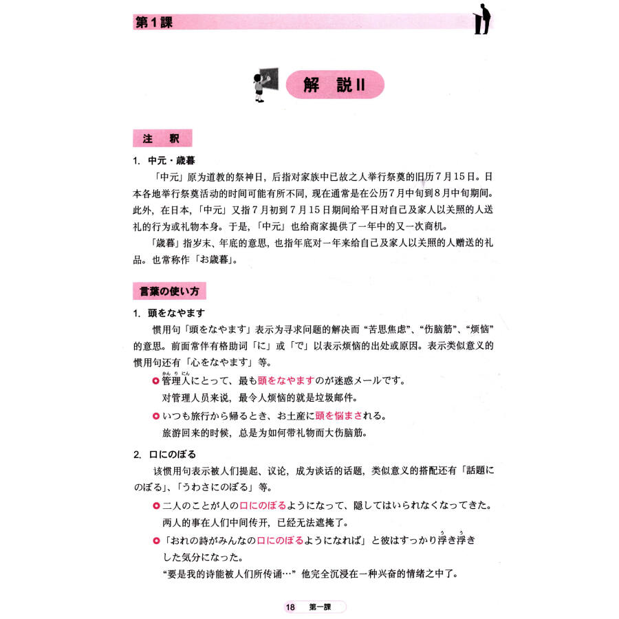 《新世纪大学日语第二册》在编写过程中,充分研究了国内外的中级日语教材,博采众长,为我所用。全套教材统一策划、循序渐进、总量适当、难易适度,所选文章时代气息浓郁、可读性强,为学习者提供了原汁原味、地道优美的日语。突出词汇和句型等的运用技能的培养和训练。本套教材的整体设计、课文编选、语法解说和练习由中方编委完成,日方专家负责编写了配套的会话和听解部分。
