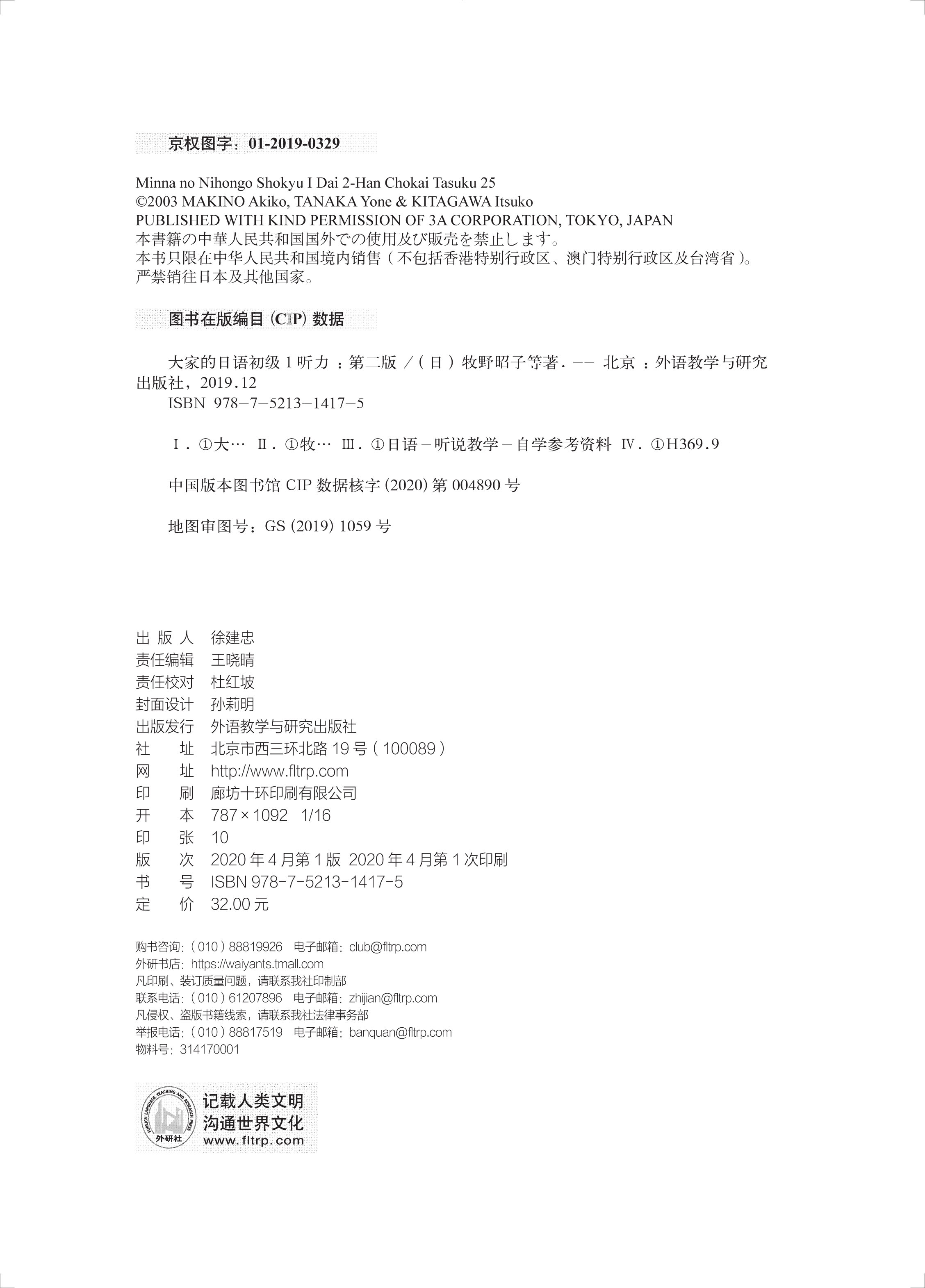 《大家的日语初级1听力(第二版)》是《大家的日语初级1(第二版)》的配套听力教材。本书分为两大部分,第一部分是日语五十音语音入门的讲解;第二部分是25课的听力练习问题。本书依据《大家的日语初级1(第二版)》的内容编写,各课内容与《大家的日语初级1(第二版)》相配套。书中所出的问题与《大家的日语初级1(第二版)》中的各个学习项目对应,便于学习者按项目回答问题。各问题对应的学习项目请参考目录。本书包含每课听力问题、听力原文、答案,无光盘,录音可扫描封底二维码收听。
