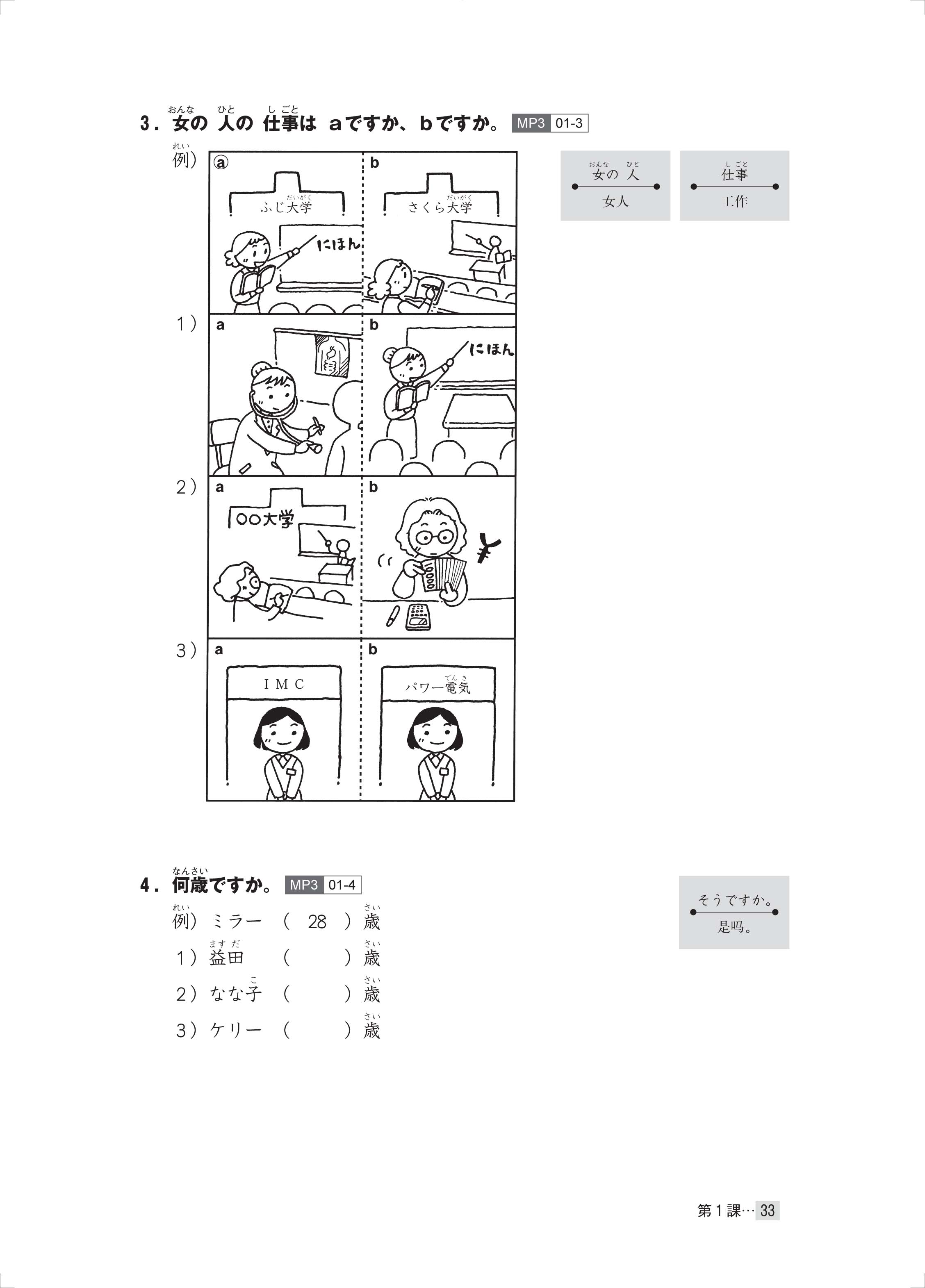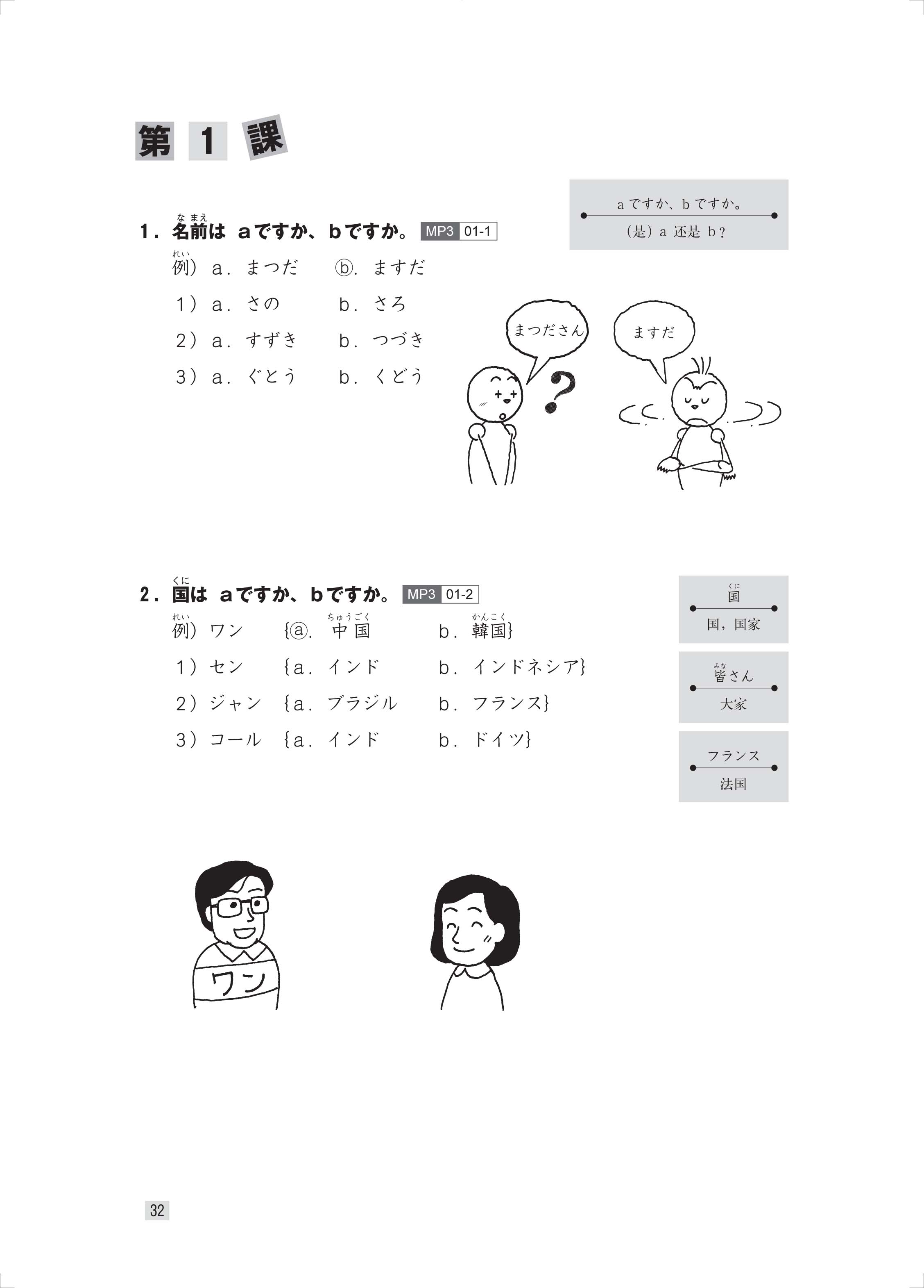 3.用法多样。可以用于在课堂上导入句型或课后确认学习效果,也可作为结束初级阶段学习后的复习教材使用。另外还可以把本书中的对话内容用于课堂发言以及其他各式各样的课堂活动中。