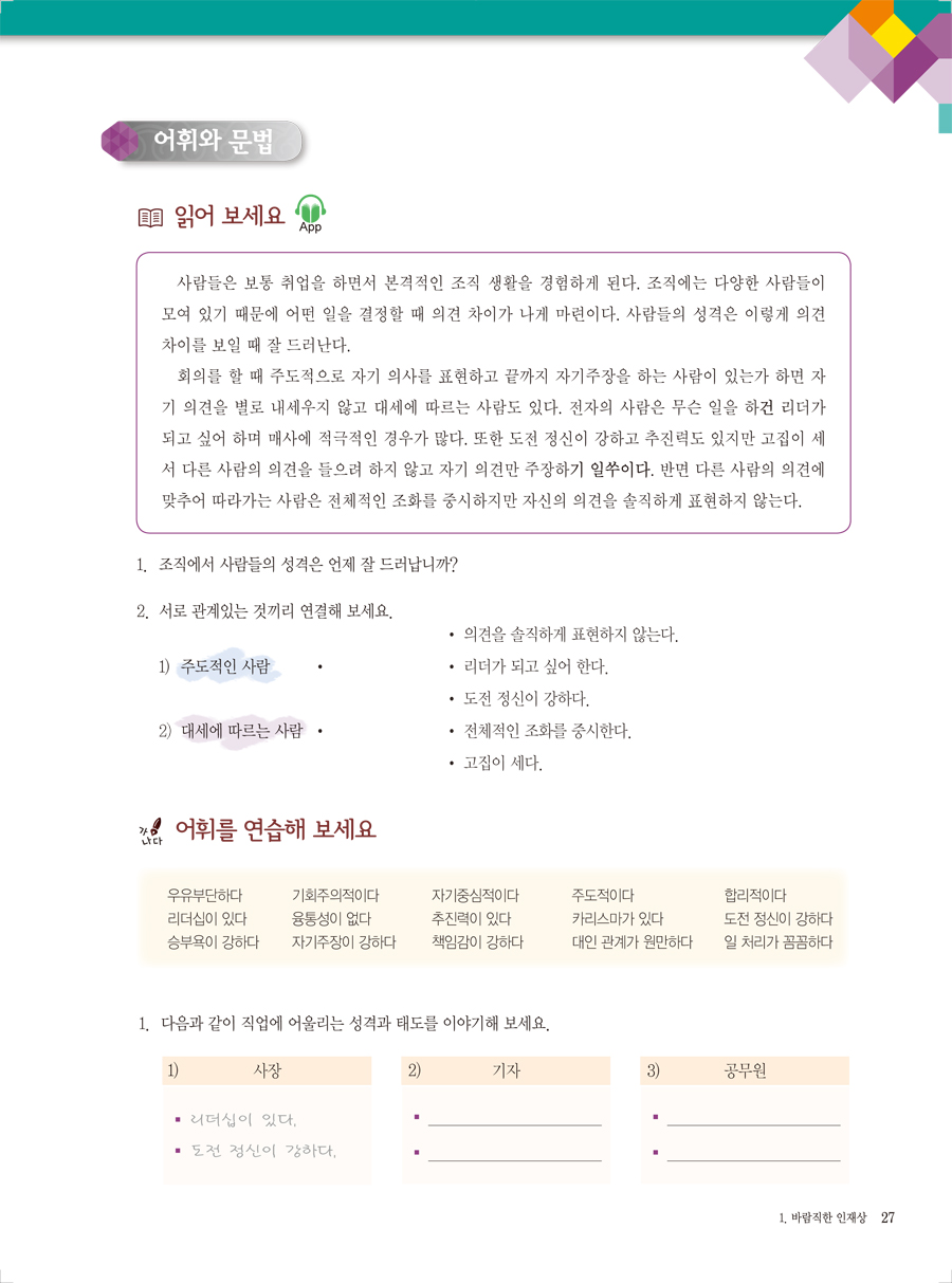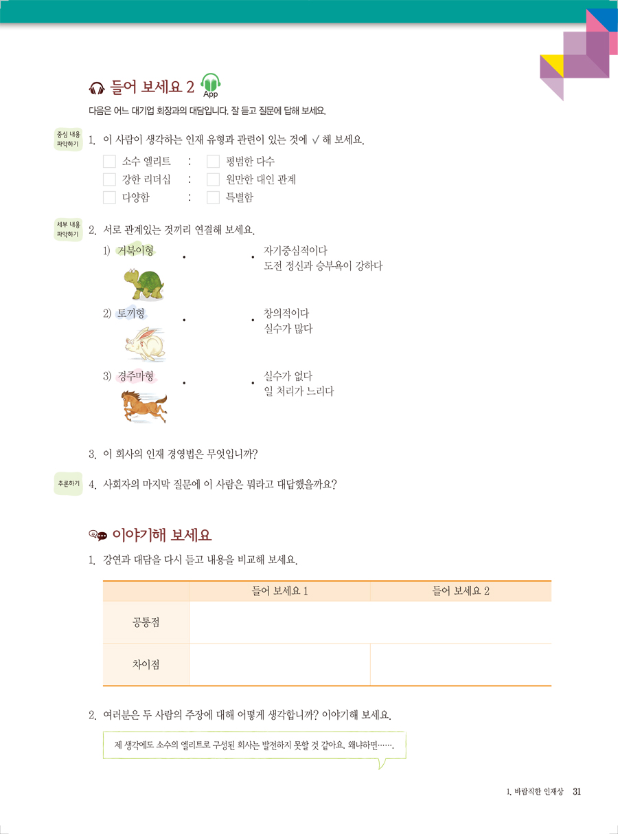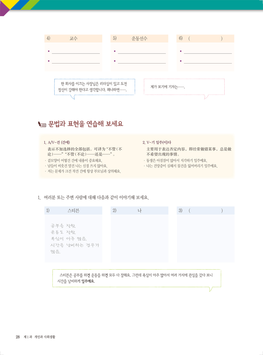 的教学目标是使学习者能够以政治、经济、社会、文化等各种社会性领域为主题用韩国语进行语言交流,并且掌握自己专业领域所必需的语言功能。本书具有如下特点: