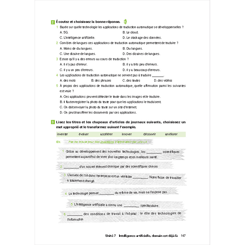 《新编大学法语3》借助数字新技术,将传统的纸质版教材与线上资源下载、互动学习APP相结合, 真正实现“随时随地”学习。