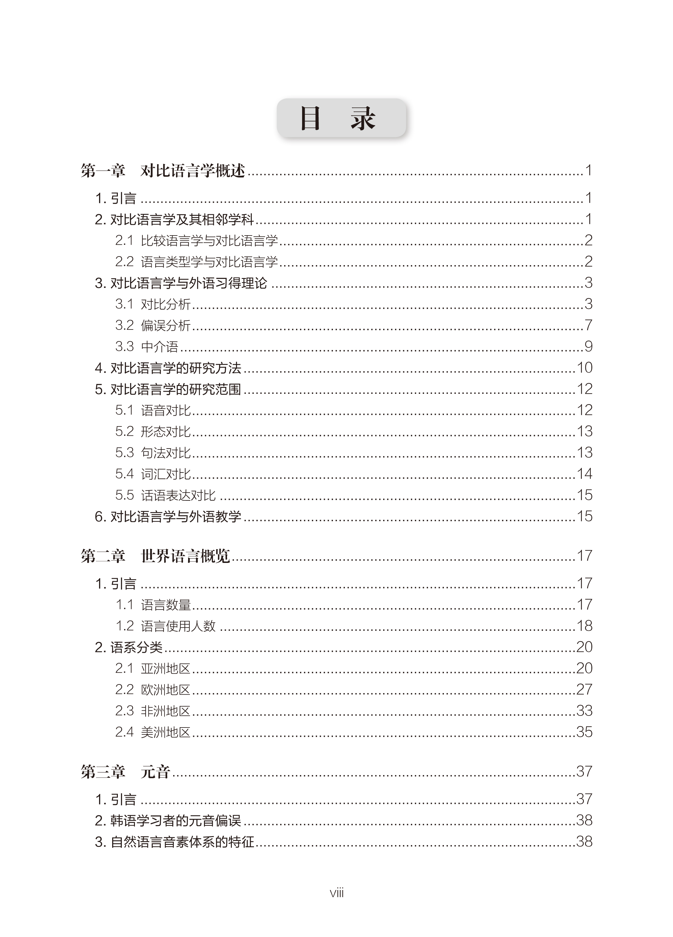 《对比语言学(中文版)》是一本介绍对比语言学的概论书,主要面向广大语言学习者和研究者。本书包括十三章,前两章是理论导入部分,即对比语言学概述和世界语言概览。第三章到第十三章是对比研究部分,包括元音、语序、时与体、句类、辅音、音节、音变现象、词汇范畴、构词法、词汇、话语与表达方式。各章节又分为引言、偏误分析和各语言的特征三部分。先详细介绍了对比语言学的相关理论,阐明自然语言的普遍特征,再通过丰富的示例分析不同地区韩国语学习者常见的偏误类型,进而探讨每种语言的区别特征。内容详实,体系完整。