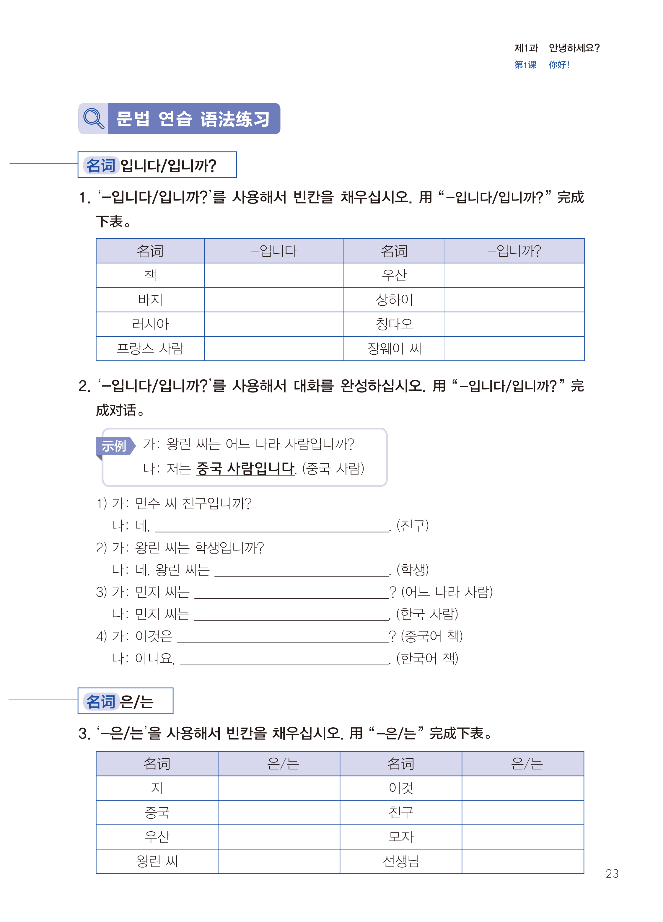 新标准韩国语韩国语新版初级上练习册