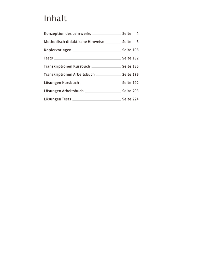 《大家的德语B1教师手册》为《大家的德语B1学生用书(配词汇手册)》的配套用书。《大家的德语》(Starten Wir)是HUEBER出版社2017年起陆续推出的一套德语教材,由外研社原版引进,适用对象为德语初级水平的培训机构学生及自学者。《大家的德语B1教师手册》阐述了教材设计理念,为教师提供了每一主题单元的教学法提示以及课堂活动材料,还包含12套单元测试题并附有答案,供教师作为课堂测验使用,学生亦可用来自测。此外,本书还提供B1学生用书和练习手册的听力原文及练习题答案。