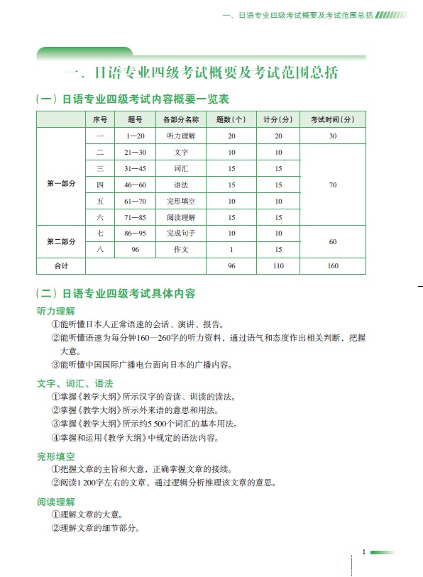 1.严格遵循《高校日语专业四级考试大纲》编写,内容紧贴命题趋势