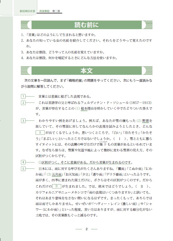 《新经典日本语阅读教程第二册》以培养学生的阅读理解能力为目标编写而成,有以下几个特点: