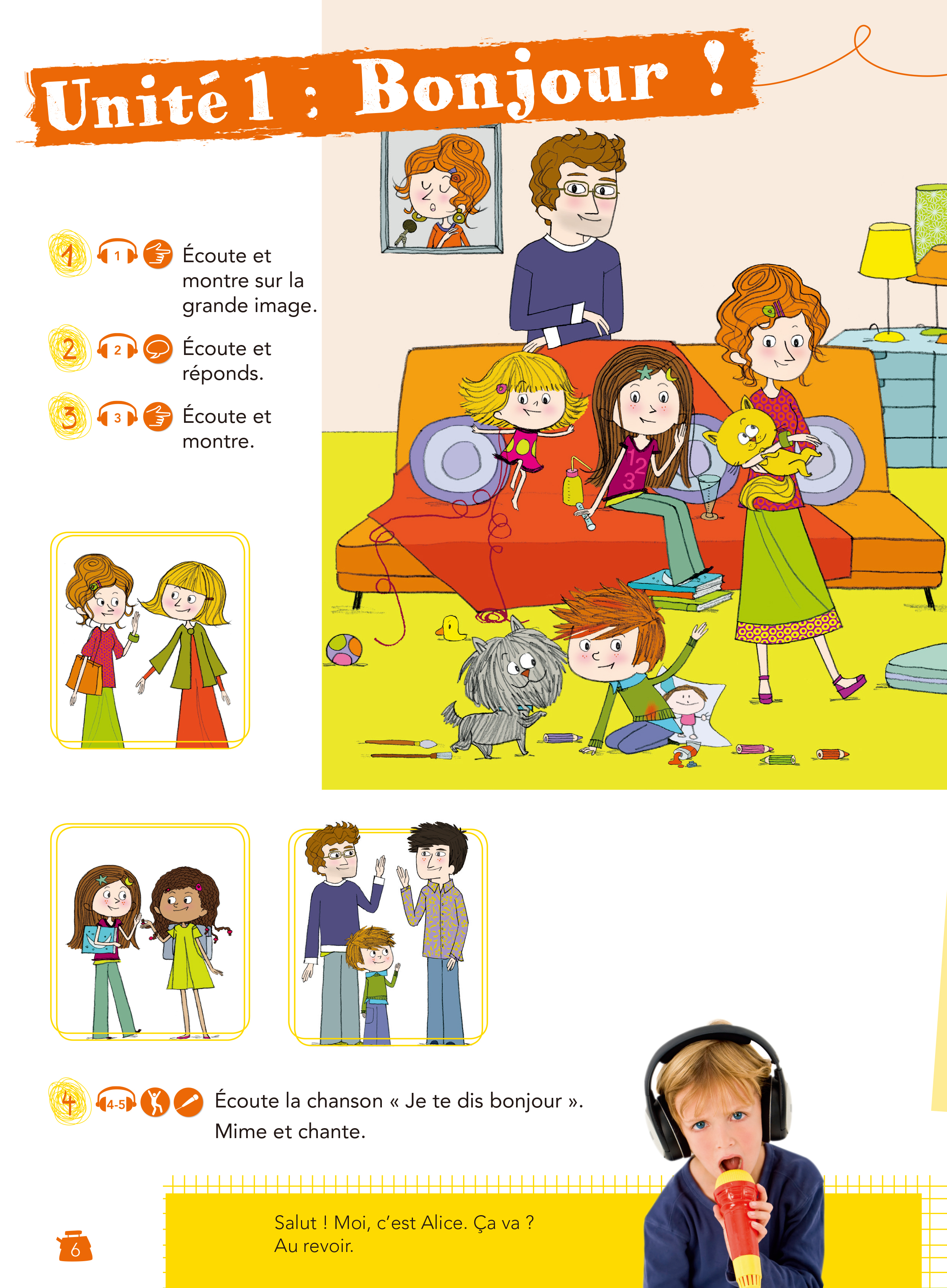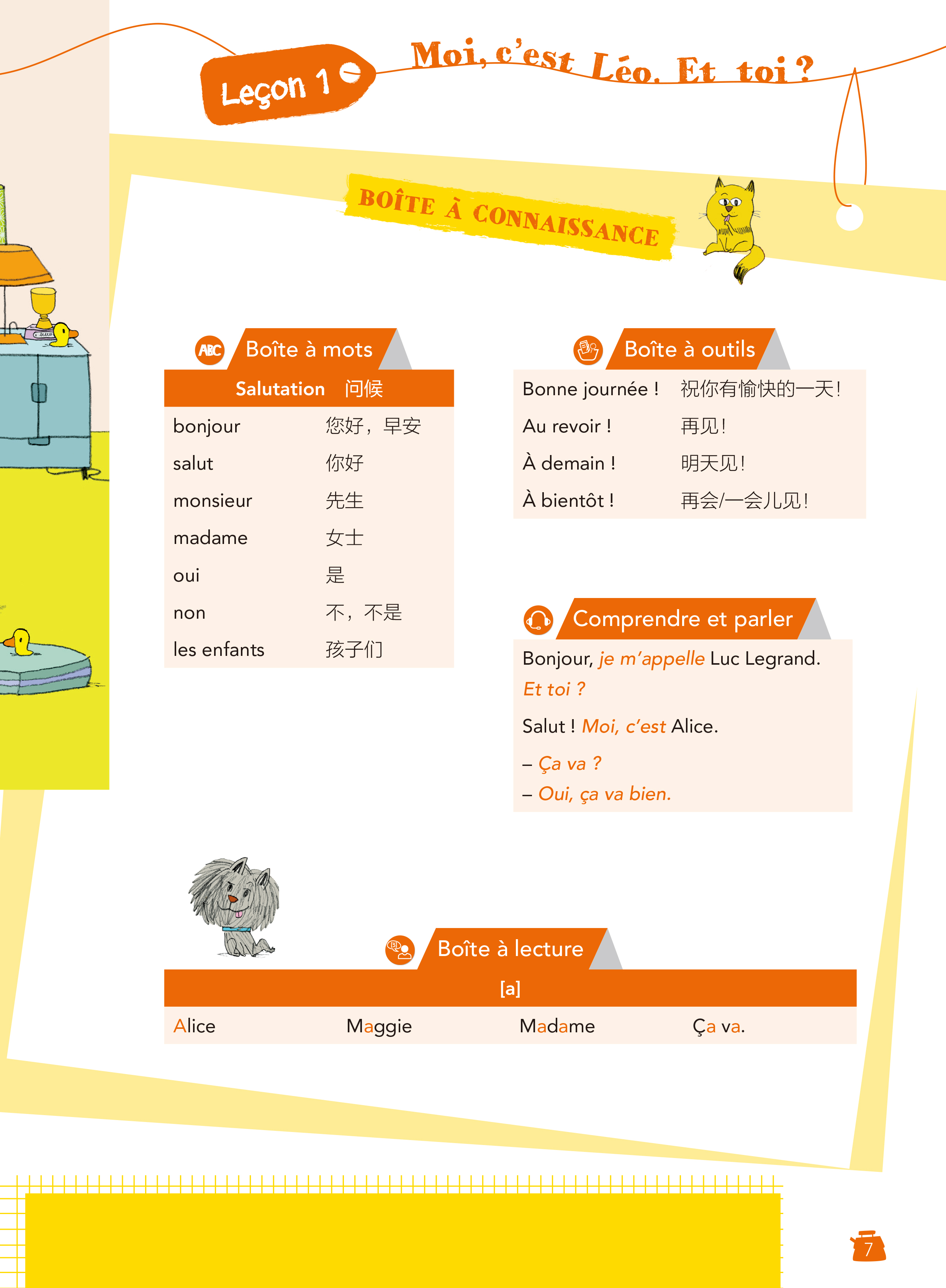 《新少儿法语1学生用书A1.1》包含6个单元,每个单元包含5课和2个文化信息页,另外还有3个游戏页(remue-ménage)、3个主要节日介绍、歌谣、诗歌。教材在原版学生用书的基础上进行了完善和补充:每课增加Boîtes à connaissance(知识总览),分为Boîte à mots(单词盒子)、Boîte à outils(知识盒子)、Comprendre et parler(听说盒子)及Boîte à lecture(拼读盒子)四个模块,各模块侧重培养不同的语言技能,可为学生、家长、教师提供直观可用的教学辅助工具。知识总览亦可作为学生课前预习、课后复习、兴趣自学的辅助参考。