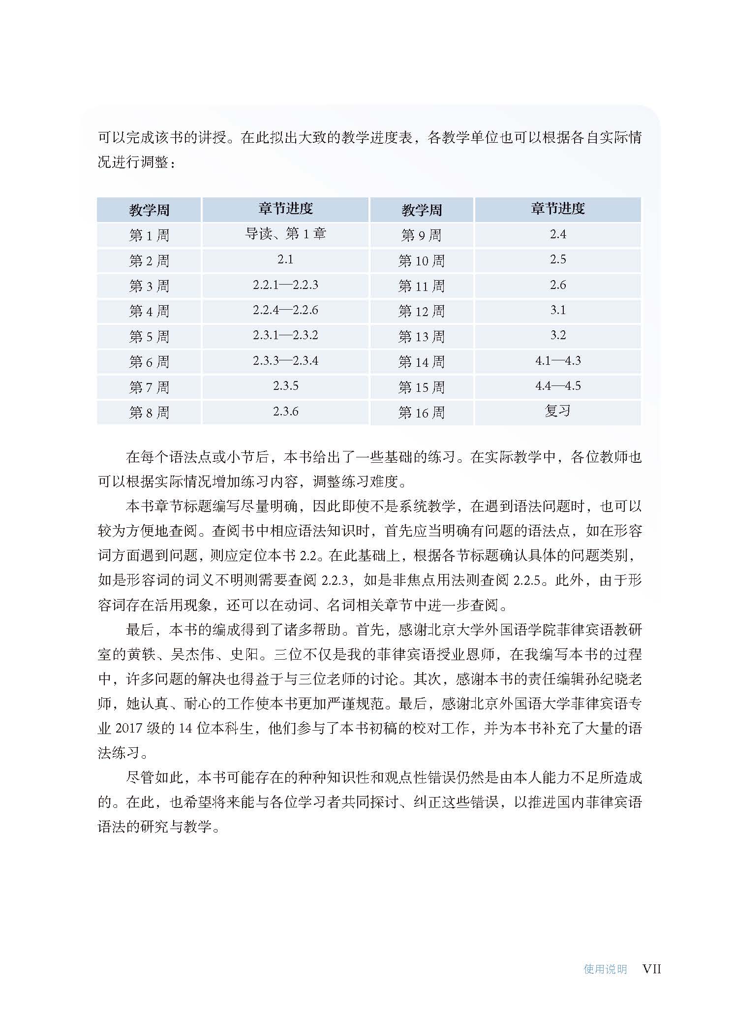《新经典菲律宾语基础语法教程》主要针对高等教育菲律宾语专业大二年级及以上学生编写,要求学习该书前学生至少能够熟练掌握北京大学出版的《基础菲律宾语1》中的内容。本书并非一本从零开始的语法手册,而是旨在系统、集中地解决语言教学实践当中出现的语法问题。因此,要求学习或使用该书的学生具备一定的菲律宾语语言技能和菲律宾语自学能力。本书在章节编排上按照由简入繁的顺序:在句子结构上,先讨论简单句和复合句,其次是由简单句构成的复杂句;在词类上,按照不同词性,从基本构词法和用法入手,再到较为复杂的词汇和特殊用法。这一安排基本符合语言学习的一般规律,特别是语言习得实践中语法概念的生成过程。