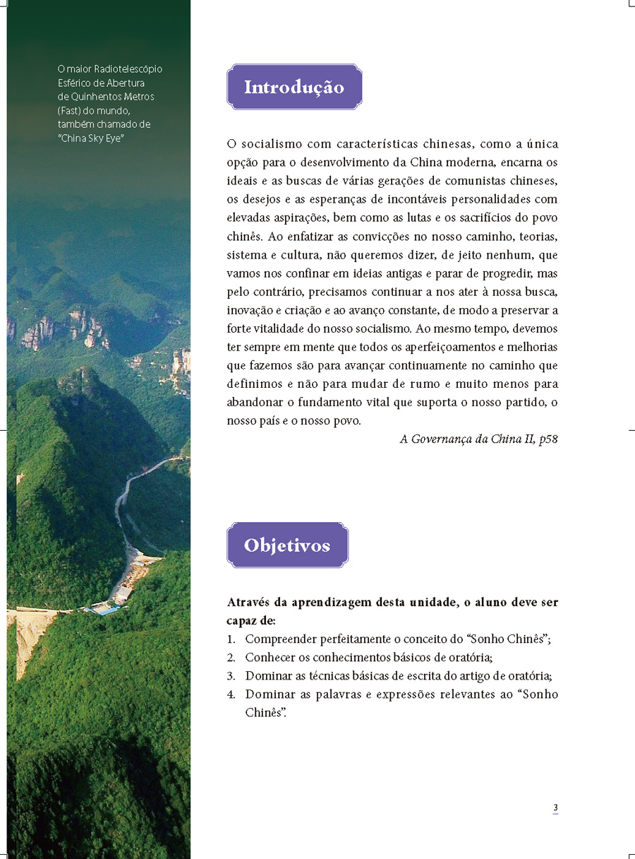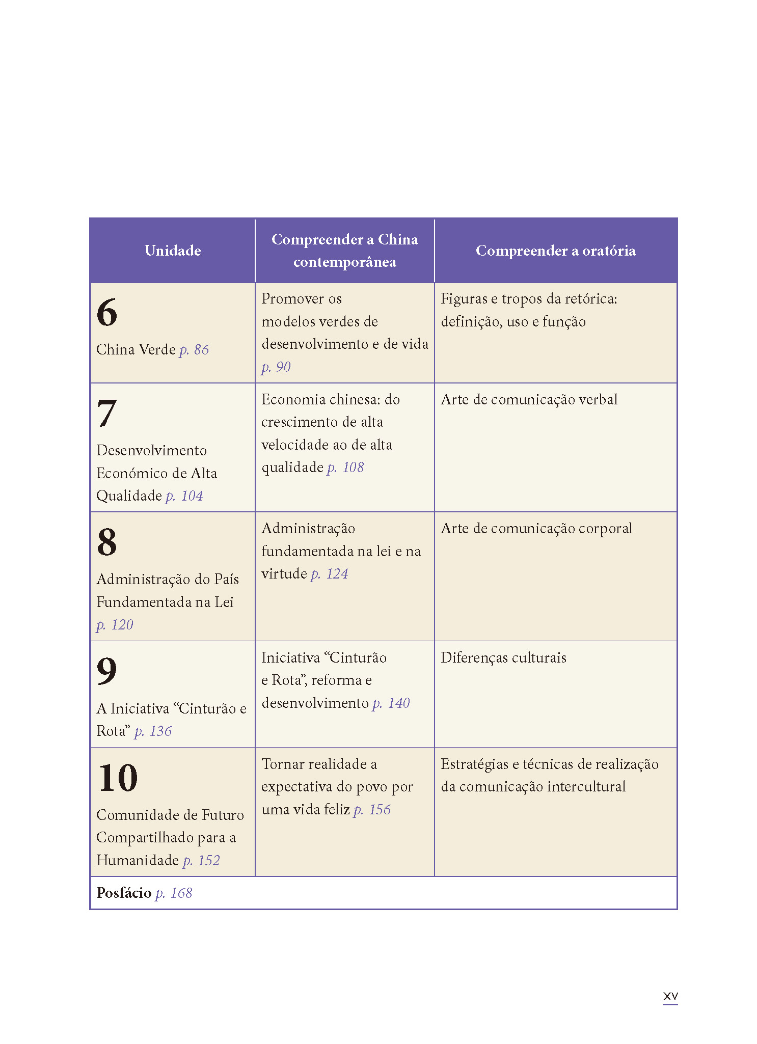《葡萄牙语演讲教程》属于高等学校外国语言文学类专业“理解当代中国”系列教材葡萄牙语系列教材,本教材可作为葡萄牙语演讲或高级葡萄牙语等课程教材,也可作为高级葡萄牙语口语课程的平行教材,适用于葡萄牙语本科专业三、四年级。本教材将习近平新时代中国特色社会主义思想的学习与演讲能力的训练相结合,通过“理解当代中国”“向世界讲述中国”两个主要板块和演讲策略的讲解与演练,从分项输入到融合输出,达成理解中国、讲述中国的教学目标。本教材将习近平新时代中国特色社会主义思想的学习与演讲能力的训练相结合,通过“理解当代中国”和“理解公共演讲”两个主要板块,从分项输入到融合输出,达成理解中国、讲述中国的教学目标。全书共10个单元。各单元主课文选自《习近平谈治国理政》第一卷、第二卷、第三卷的葡萄牙语版,包括10个方面:中国梦、社会主义核心价值观、文化自信、消除贫穷与共同富裕、改革开放、绿色中国、高质量经济发展、依法治国、“一带一路”倡议和人类命运共同体。
