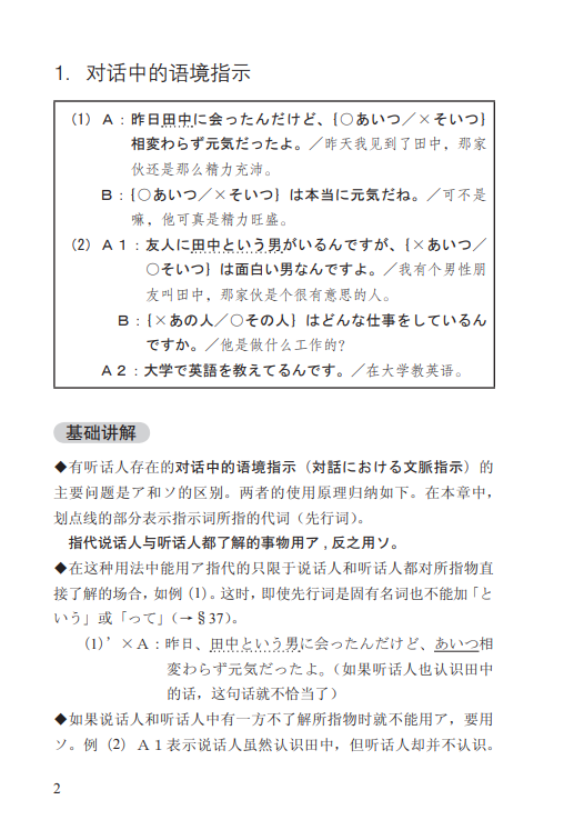 本书将“中高级”的范围定位于日语能力测试2级以上的水平,所涉及的语法项目分为43章。其中很多是继续《初级日语语法精解》的章节进行讲解,进一步增加了有难度的内容。
