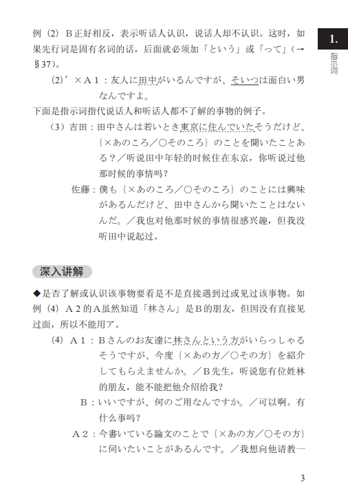 各章节均分为导入部分和讲解部分。导入部分在各章的最前面,起纵揽全局的作用;讲解部分按照基础讲解、深入讲解、研究导航这样三个层次逐层深入。日常教学中所需要讲解的语法信息主要放在基础讲解和深入讲解的部分中。在基础讲解的部分中,主要列举教授该项目时应该提供给学习者的最基本的信息。在深入讲解的部分中,根据学习者掌握的情况及学习兴趣,进一步给出有价值的学习信息(有些语法项目没有深入讲解的部分)。在这一部分中还讲解类似的表达方式及能否与其他用法替换等问题。另外,有些章节在结尾处进行归纳总结,将该章节讲解的各项内容在语法知识体系中进行重新定位。在研究导航的部分中,除提供该章节讲解的语法项目的有关补充信息外,还对该语法项目在理论上的定位及与该语法项目相关的其他表述方法进行了介绍。并且,还从更广阔的视野出发,介绍了一些方言语法。