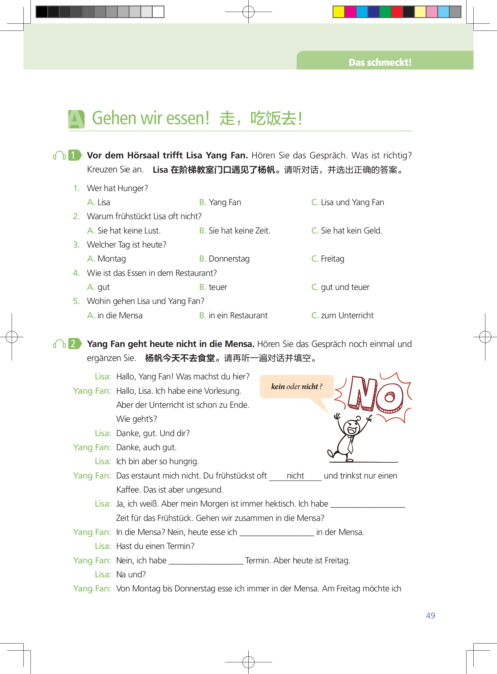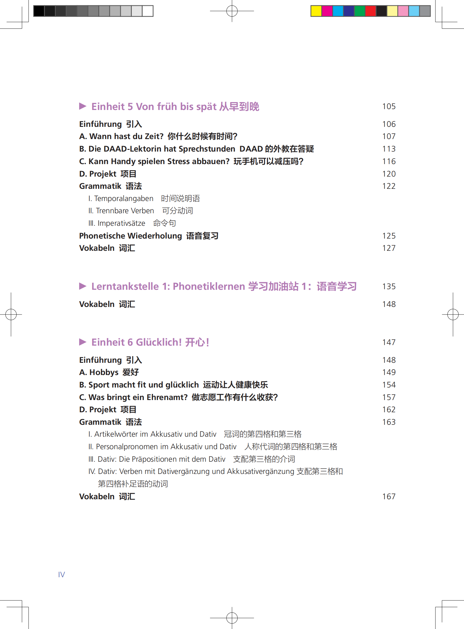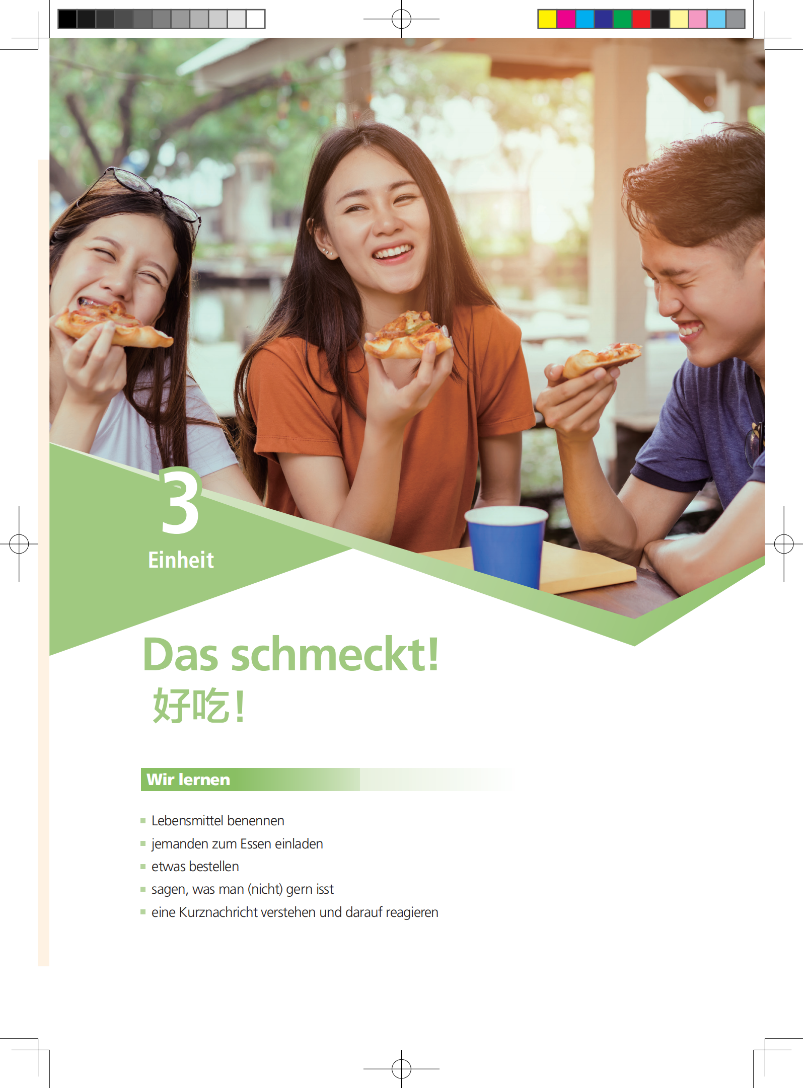 《新一代大学德语1学生用书》共10个单元,另有两个学习加油站介绍德语学习的方法,同时附有标注了大学德语四级和六级词汇的词汇总表。每个单元围绕一个贴近中国学生学习和生活的主题展开,以与主题相关的交际场景为主线,通过交际任务的设置将听、说、读、写、译各项语言技能的训练贯穿期间,用启发式的教学方法将语法的学习、理解和应用融入其中。每个单元由学习目标、引入、三个交际模块和一个项目模块、语法总结和单元词汇表等部分组成,前五个单元还包含语音总结。每单元约需6学时,每个学习加油站2学时。各学校可根据课时设置和具体教学情况选择性地使用教材中的材料。