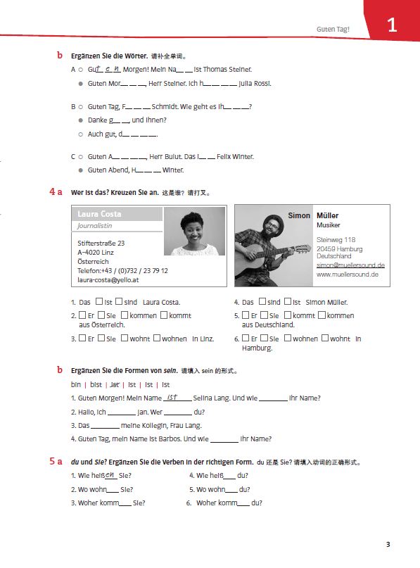 《你好!德语(视频版)》系列教材的语法体系清晰,语言素材贴近德语文化圈的实际生活。在全面培养学习者德语能力的同时,还加强对德语交际能力的训练:书中不仅配有大量的音、视频资源,而且着重引导学习者运用所学内容进行自我表达和交流互动。此外,本套教材兼顾学习者对各类德语能力考试的备考需求,提供歌德证书、telc和ÖSD等考试的题型练习。