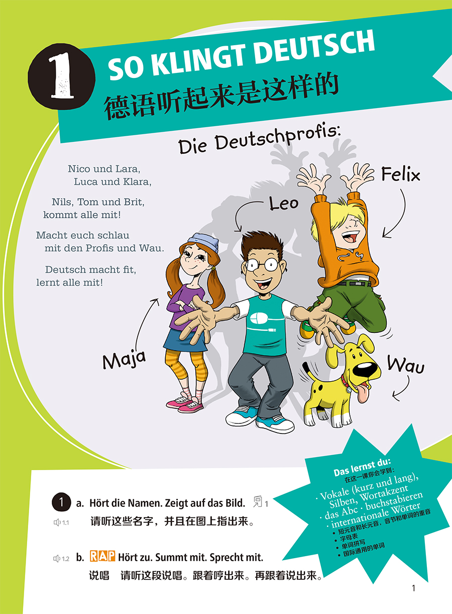 “少儿德语”系列教程(Die Deutschprofis)是一套专门为德语非母语(Deutsch als Fremdsprache)学习者编写的德语学习教程,由德国柯莱特教育出版社(Klett)出版发行。
