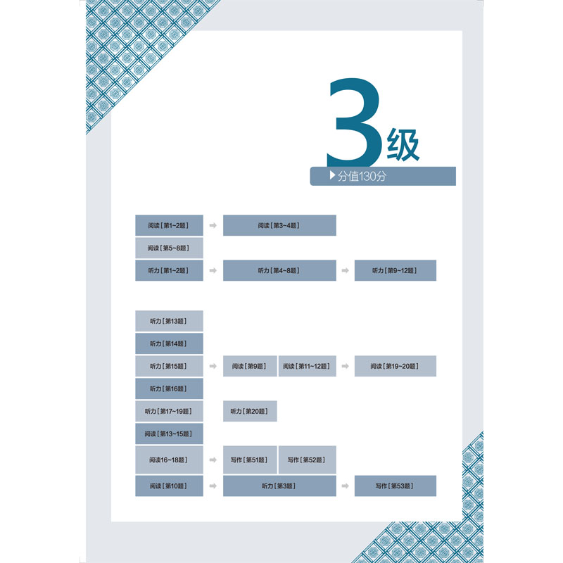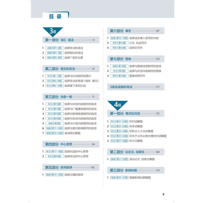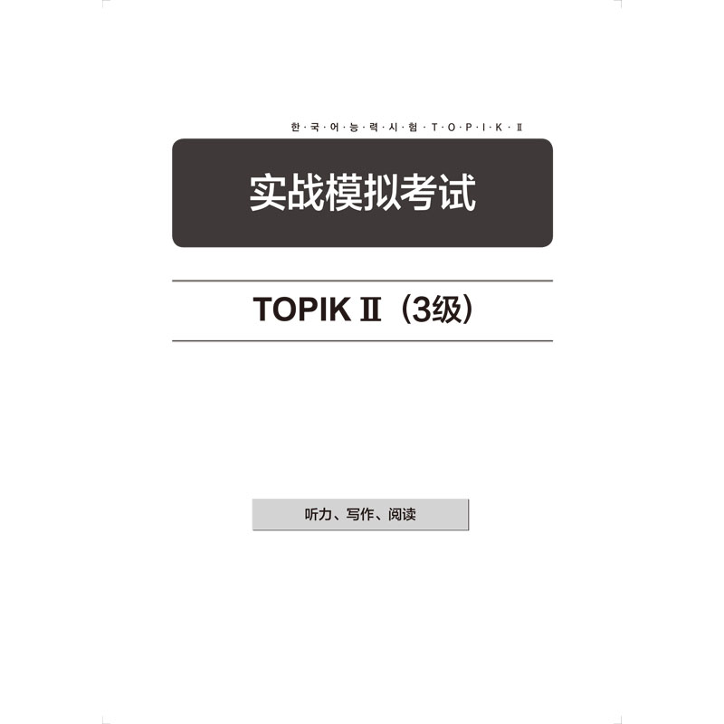 以正在备考TOPIK的外国考生为对象的专项学习教材。内容分为题型分析、应试策略、实战练习和自我评价四个部分。考生在准备阶段可以针对韩国语能力考试中常出现的词汇、语法写作技巧进行集中学习。然后在题型分析阶段熟悉题型,之后通过对真题和模拟题的练习来强化对题目的分析并培养解题能力,达到提高学习者综合应试能力的目的。最后通过模拟考试进行最终的检验,且给出详细的解析以及技巧总结,让学习者能够通过模拟题找到自己的能力盲区和知识盲区,查漏补缺,顺利通过韩国语能力考试。