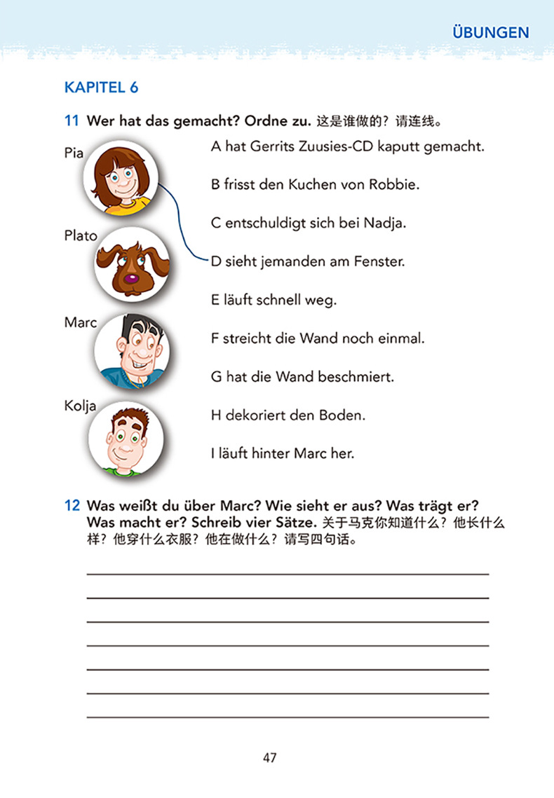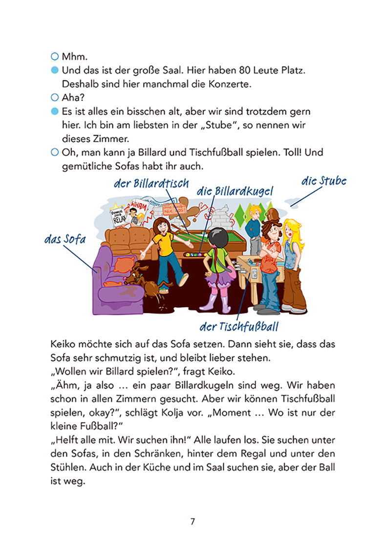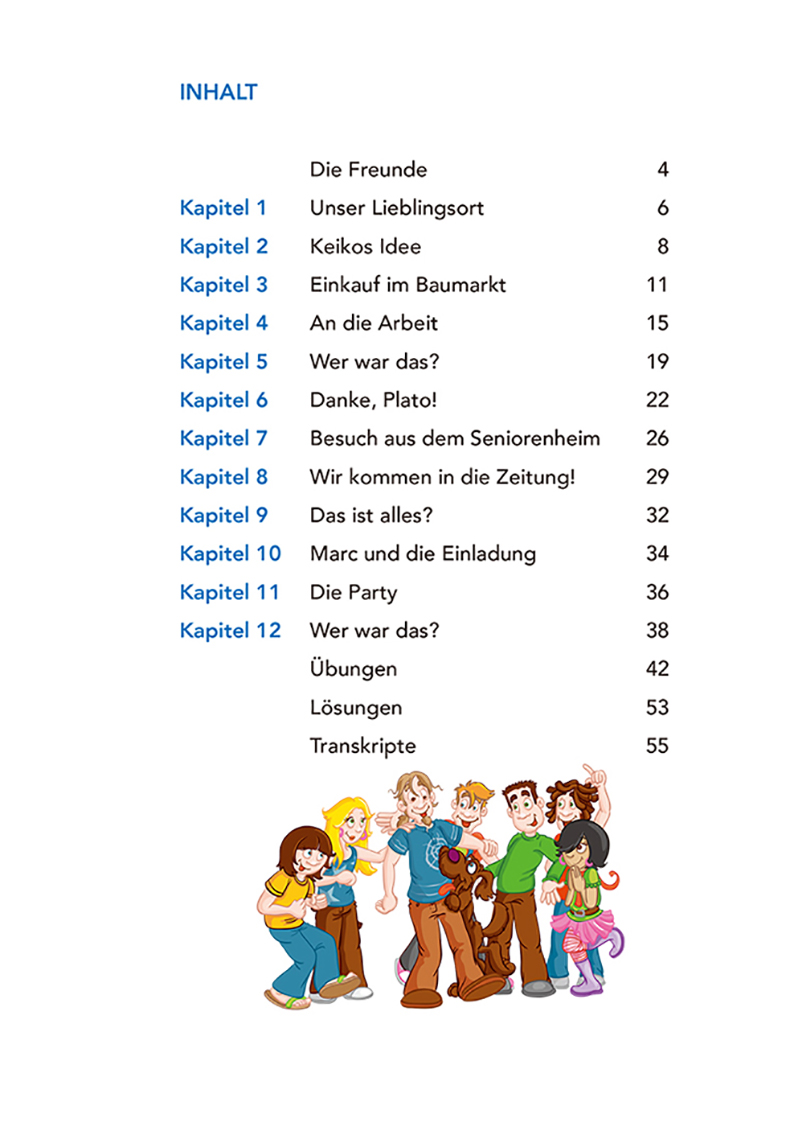 1. “开心学德语(青少版)轻松读物”系列讲述了皮娅,保罗,科里亚,罗比和娜迪雅这些朋友们之间发生的小故事。整个系列配有德语全文朗读音频,可通过扫描二维码及登录网站下载。配图生动活泼,有助于更好理解文章。每一本都有配套的阅读练习与听力练习。同时还有国情介绍文章,让读者了解德语国家及地区的青少年日常学习及业余生活。