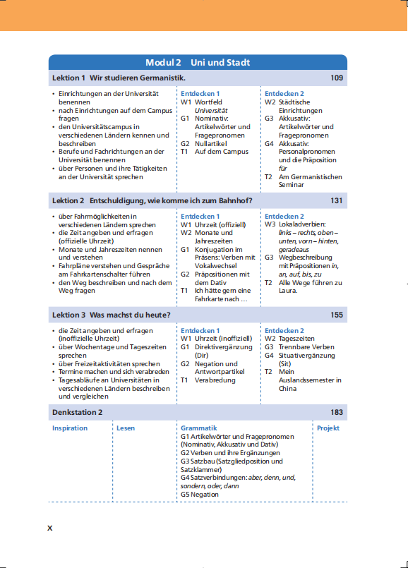 《新经典德语》系列教材在编排时立足中国标准,特别是《普通高等学校本科专业类教学质量国家标准(外国语言文学类)》和《普通高等学校本科德语专业教学指南》中的总体人才培养目标,以及《高等学校德语专业德语教学大纲》中的具体课程和阶段能力目标,同时参考《欧洲语言共同参考框架:学习、教学、评估》中的语言能力量表和德国歌德学院有关德语语法、词汇的具体分级建议,科学布局内容,统筹国内国外标准;