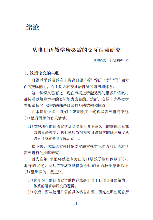《面向日语教育的语言交际研究》是《交际型日语教学语法研究》的姊妹篇,是野田教授继前著之后,在日语教学领域里进一步跃马横刀、纵深进击的体现。前著《交际型日语教学语法研究》如其书名所示,重在探讨一种崭新的日语教学语法体系。那么,“新”在哪里呢?