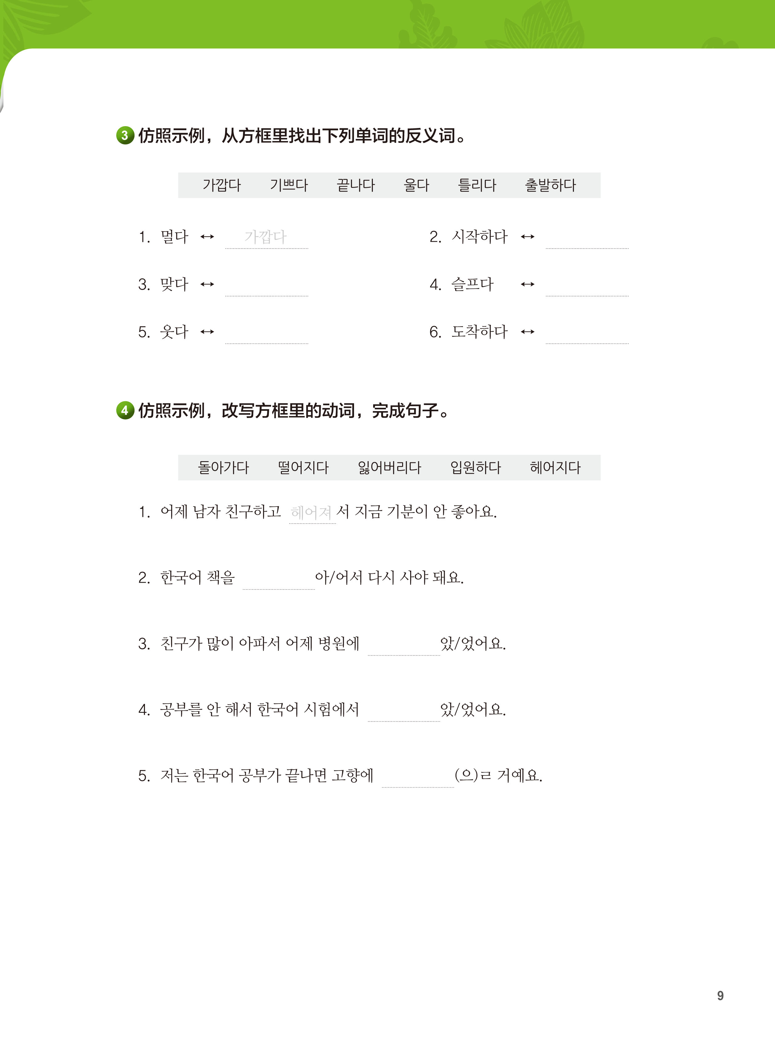 首尔大学零起点速成韩国语3同步练习册