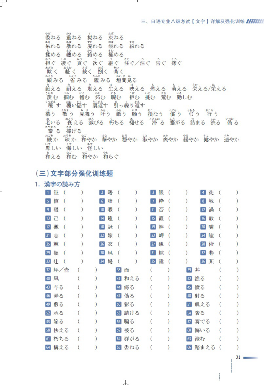 《日语专业八级考试综合辅导与强化训练》为日语专业学生八级考试的备考用书、教师的专业八级辅导和讲解用书,同时它也是一本日语专业高级阶段的综合语言知识手册。本书对《全国高等院校日语专业基础阶段教学大纲》以及《高校日语专业八级考试大纲》中要求的文字、词汇、语法、听力、阅读等知识进行了全面详细的介绍和讲解说明,内容全面、讲解详尽、练习丰富。