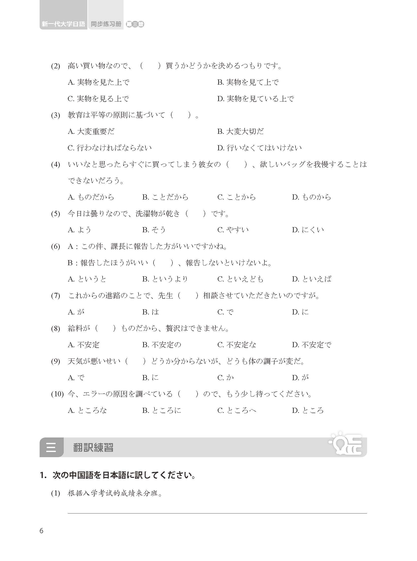 《新一代大学日语第三册同步练习册》:夯实基础,巩固提高。
