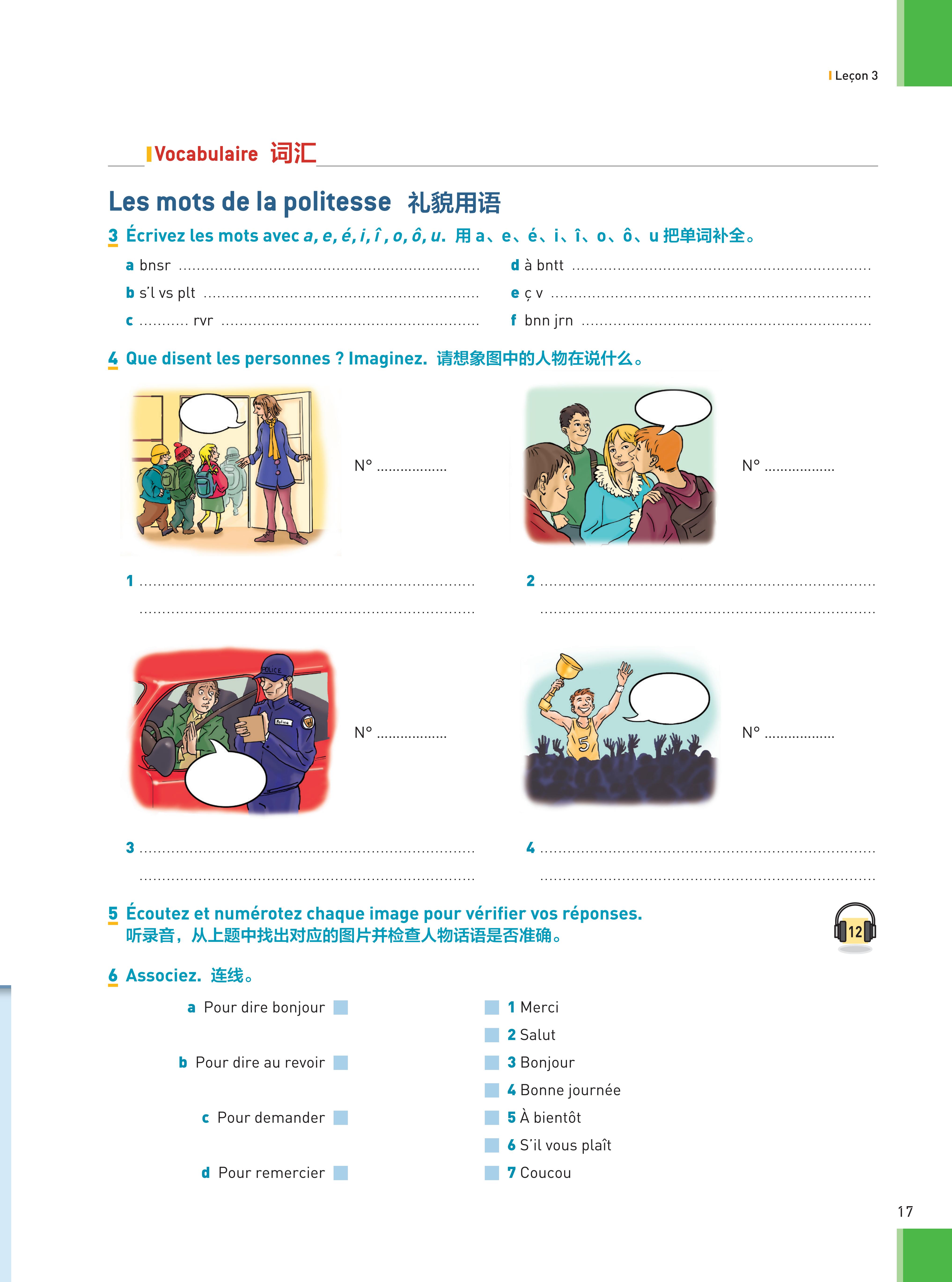 《totem大家的法语1练习册A1》为学生用书配套训练册,对应学生用书的学习进程和结构。练习册通过丰富多样的练习——听力理解和阅读理解练习、语法练习、词汇练习、语音练习、交际练习,巩固所学知试。每两个单元配有Faits et gestes/Culture单页;各单元末尾配有小结,全书最后配有对应级别的DELF考试。