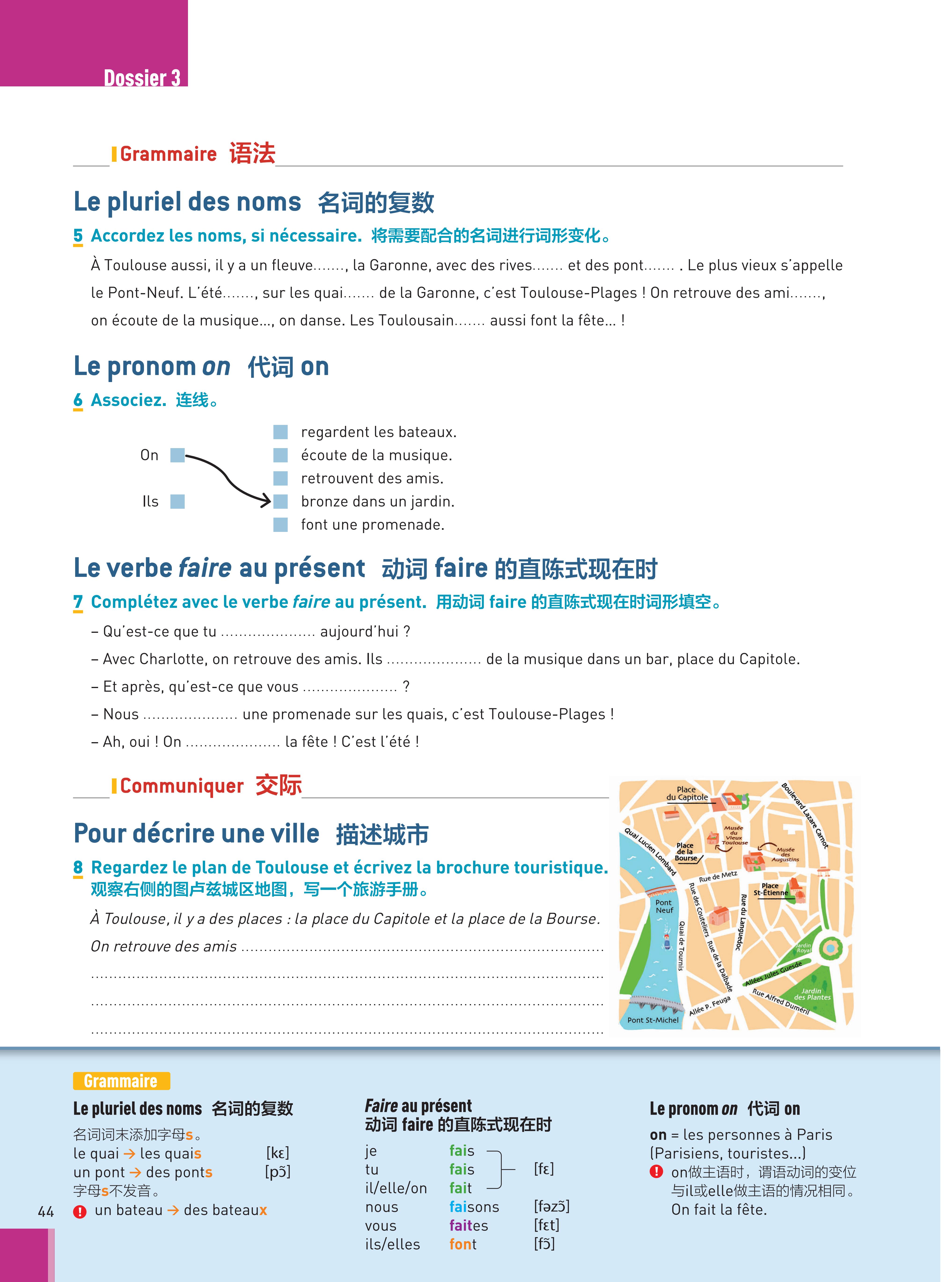 《totem大家的法语1练习册A1》为学生用书配套训练册,对应学生用书的学习进程和结构。练习册通过丰富多样的练习——听力理解和阅读理解练习、语法练习、词汇练习、语音练习、交际练习,巩固所学知试。每两个单元配有Faits et gestes/Culture单页;各单元末尾配有小结,全书最后配有对应级别的DELF考试。