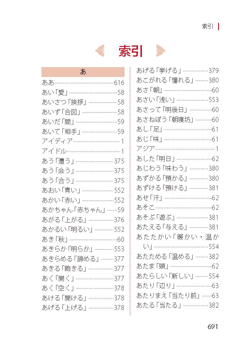 《新高考日语必备词汇释义手册》依据《义务教育日语课程标准(2022年版)》《普通高中日语课程标准(2017年版2020年修订)》编写,由教学经验丰富的高中日语一线教师和景德镇陶瓷大学外国语学院日语教师共同完成。该书内容涵盖了两部课标中的全部单词,并为每个单词配备了三至五个例句,使学习者更容易理解和掌握单词含义。内容以实用和实战为出发点,每个词条的释义和例句的配备都是按学生学习词汇和语法的先后顺序,从易到难,符合学生的心理接受能力和学识水平的逐步提升而排列,并且例句注重贴近生活,尽量避免出现课程标准以外的词汇和高考不涉及的语法,以免增加学生的学习负担。注重新颖性 该手册以词为纲,以语法为目,以典型例句再现词汇与语法的关系。通过例句可以掌握词汇和语法,这样既避免了单纯背诵词汇的枯燥,又避免了抽象学习语法的乏味,其中的典型例句学生可以记忆应用到写作文中,在学习词汇的同时,可达到举一反三,事半功倍的效果。