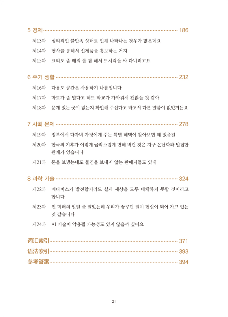 《新标准韩国语新版中级下》是“新标准韩国语新版”系列教材的第四册,对象为具有韩国语中级水平的学习者,内容包括八个单元,每个单元分三课,围绕一个交际主题展开。本教材每个单元均由单元导入、课前导入、词汇和句型、词汇和句型练习、对话、对话活动、语法、语法练习、写作、总结和评价构成,结构齐全、体系完整。贴近日常生活的对话、常用的交际用语,以及与对话内容相关的小贴士等,为学习者展现了生动、鲜活的韩国语学习场景。词汇丰富,并按照主题分类,配有生动的插图。本教材用简洁易懂的语言对语法的规则、接续方法等进行了详尽的说明,并且列举了丰富、实用的例句,例句包括单句和对话。