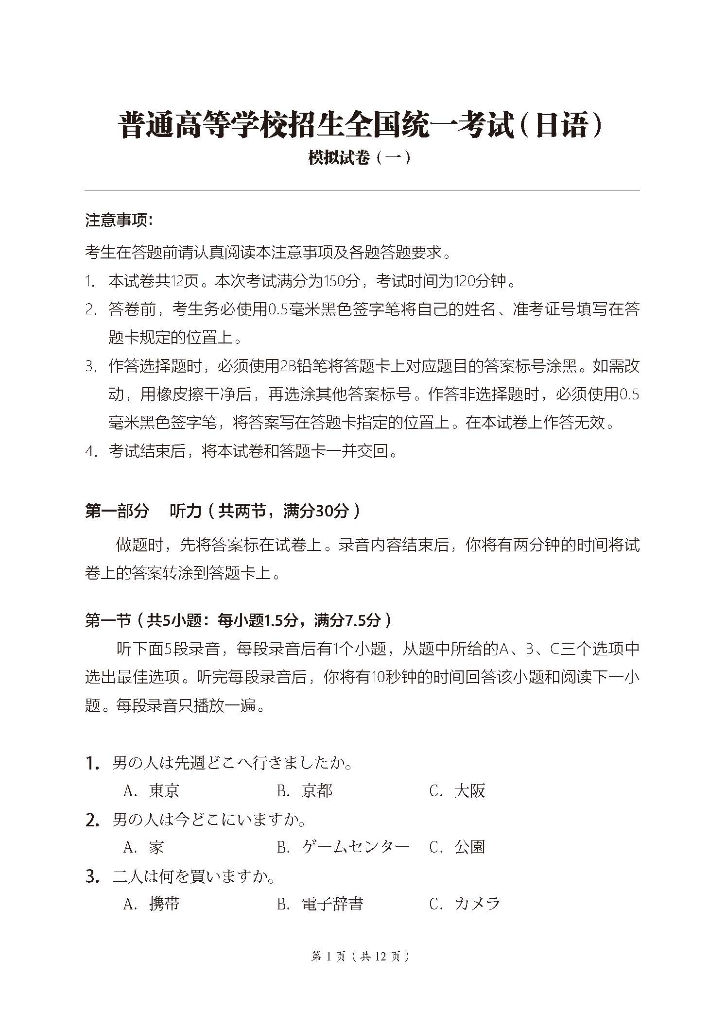 1.全面覆盖高考日语知识点,题目设定新颖,精准对标最新课程标准